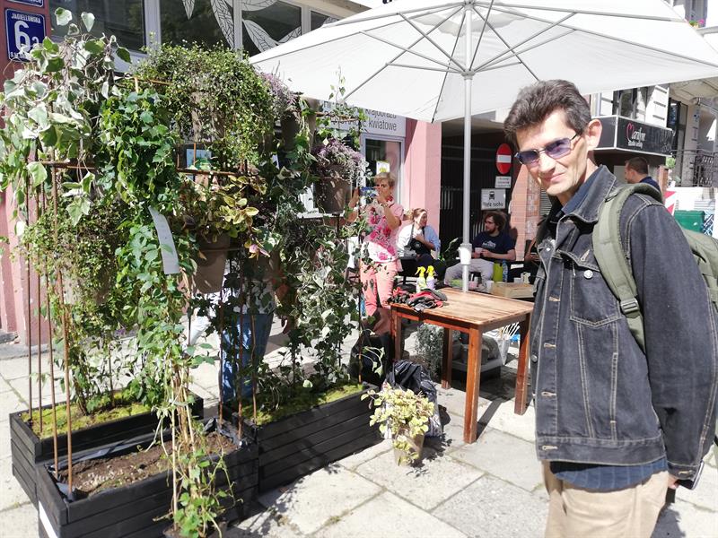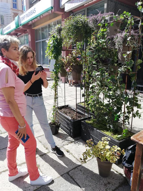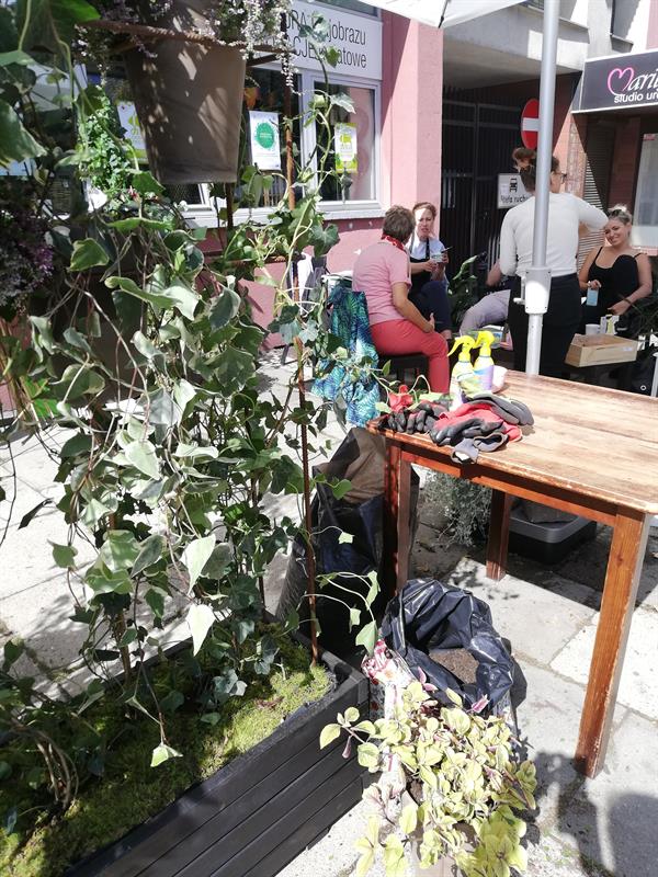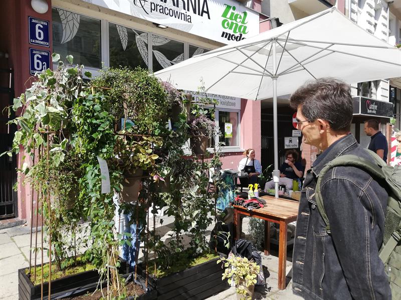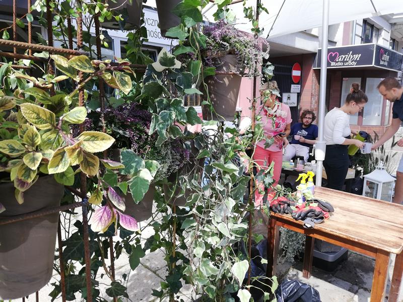 W "zielonej ścianie", pierwszej jaka stanęła w Szczecinie (5 bm.), znalazły się m.in. bluszcz pospolity oraz biały, wiciokrzew pomorski oraz japoński, winobluszcz trójlistny oraz klematisy. W roli efektownych ozdobników - tym razem - pojawiły się komarzyce w odmianach, dichondie oraz wrzosy. Jak na uliczny piknik przystało, nie zabrakło herbaty, kawy, przekąsek, a też siedzisk, nawet stołu.