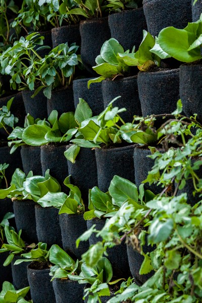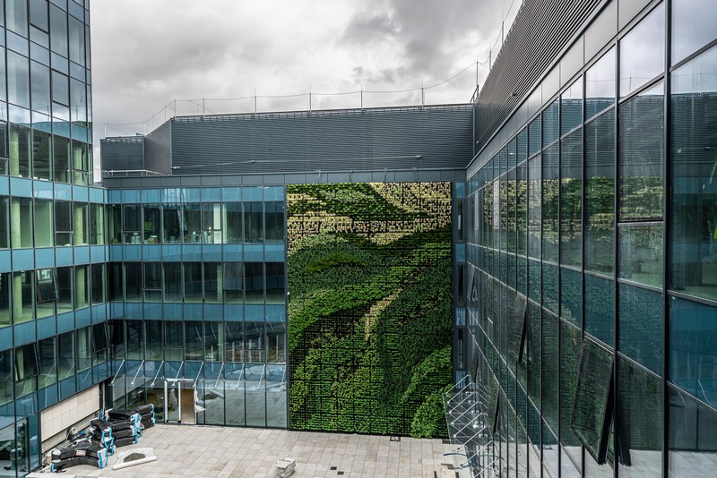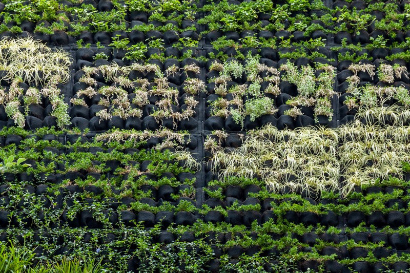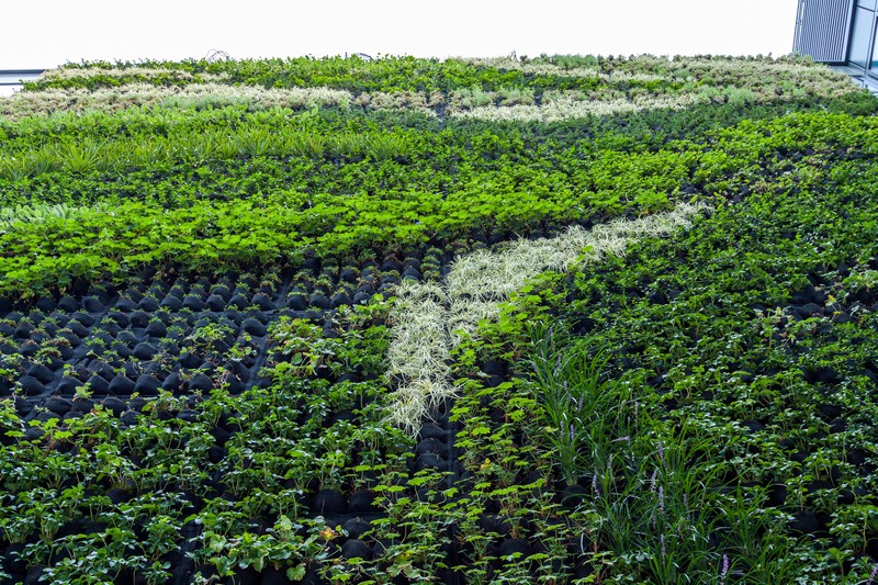 W specjalnych kieszonkach zasadzono łącznie około 6,5 tys. roślin. Gatunki dobrano opierając się na przeprowadzonej analizie ekspozycji ściany względem światła słonecznego oraz wędrówki słońca i cienia w ciągu dnia.