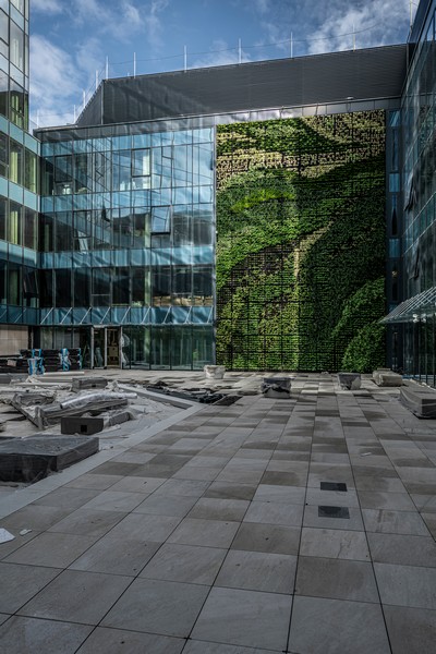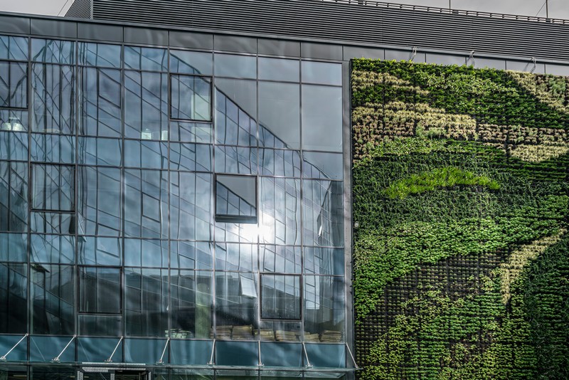 Runianki japońskie, barwinki, czyśćce wełniste, paprocie, bergenie, turzyce – te i wiele innych gatunków roślin tworzą żywą ścianę w budowanym szczecińskim kompleksie Posejdon.