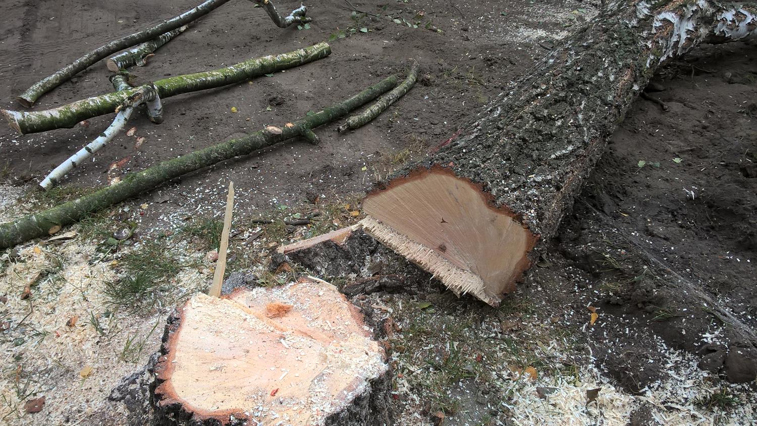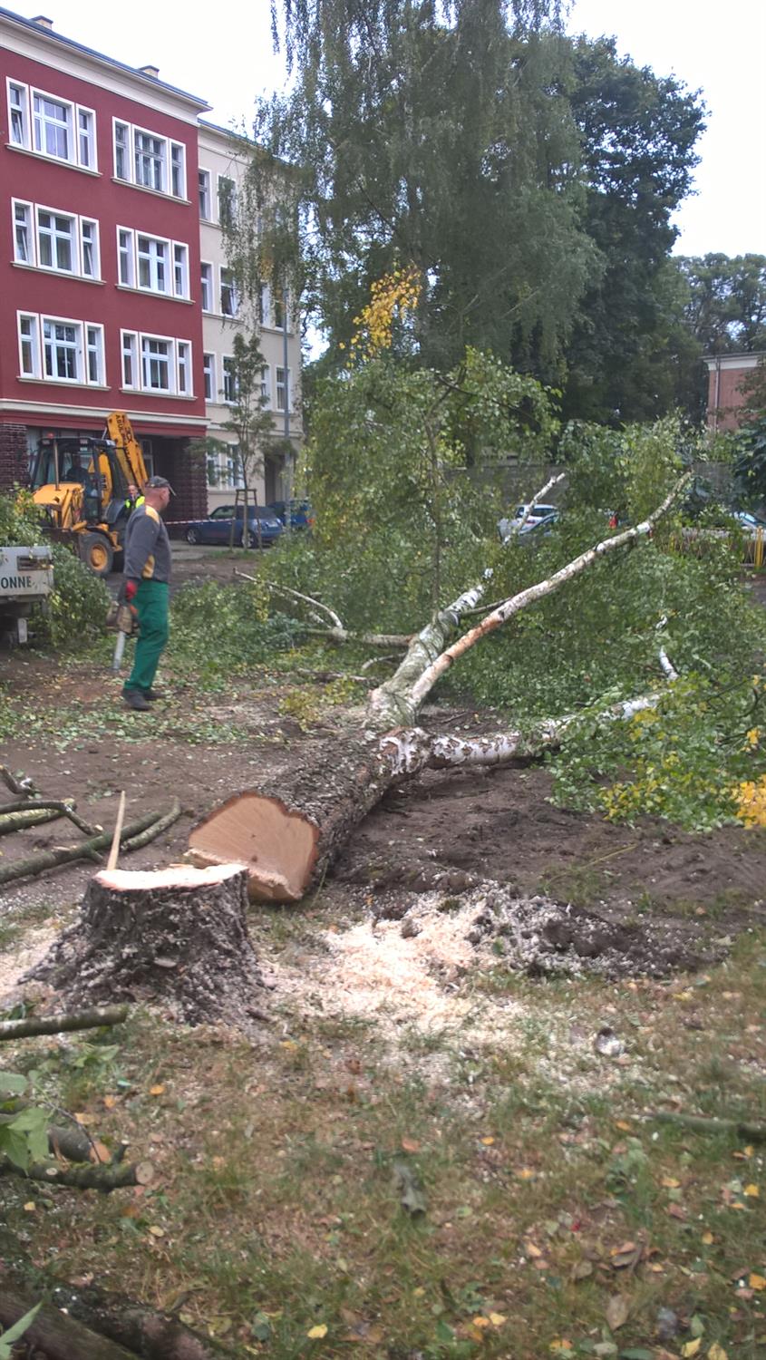 „To dokumentacja z egzekucji pięknej zdrowej brzozy. Padła, jak kilka innych drzew na tym samym podwórku. Choć to rzekomo miała być zielona inwestycja, co ma ludziom tworzyć lepsze miejsce do życia i na bardziej przyjazny zmieniać pejzaż miasta. To ja dziękuję za taką „dobrą" zmianę. Żeby „Kurier" widział, z jaką satysfakcją i przyjemnością panowie z piłami dokonywali swojego dzieła. Gdyby mogli, pewnie wycięliby wszystko, co stoi na drodze, łącznie z całym pobliskim parkiem Żeromskiego".