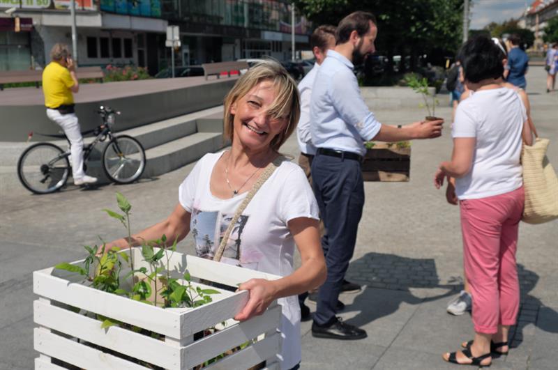 Na zdjęciu: Aktywiści rozdawali mieszkańcom Szczecina warzywne sadzonki w torfowych doniczkach.