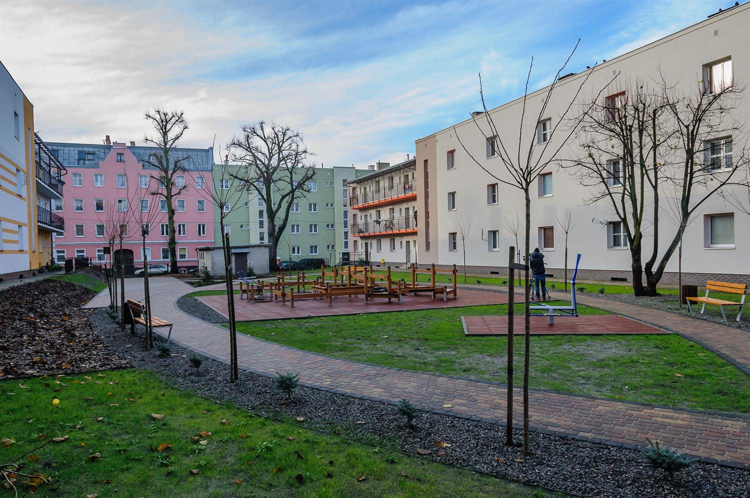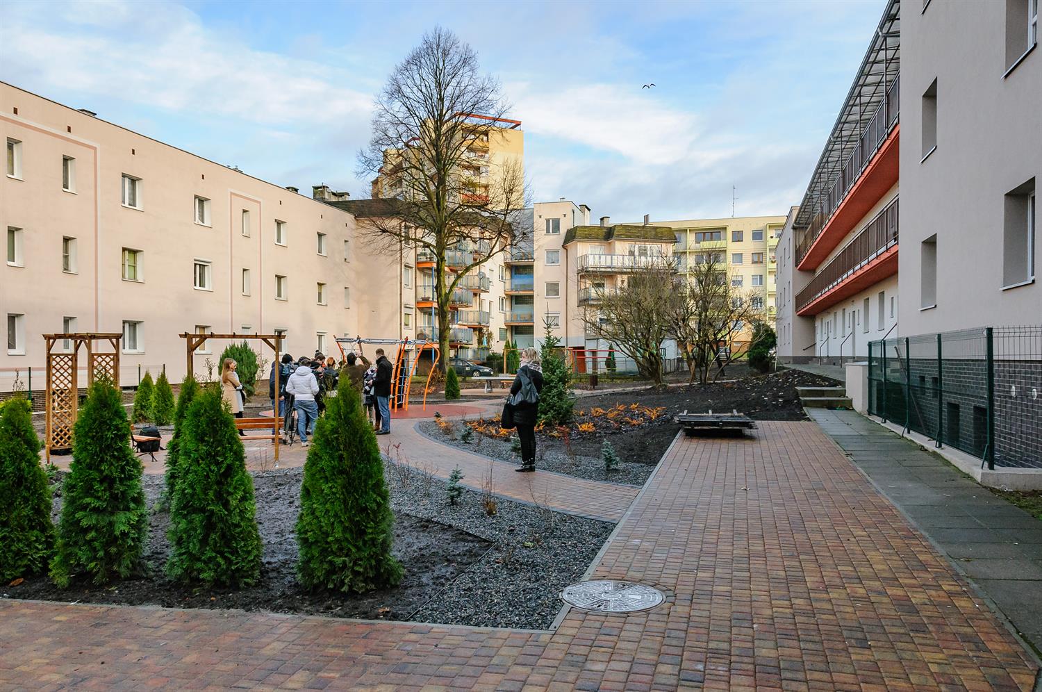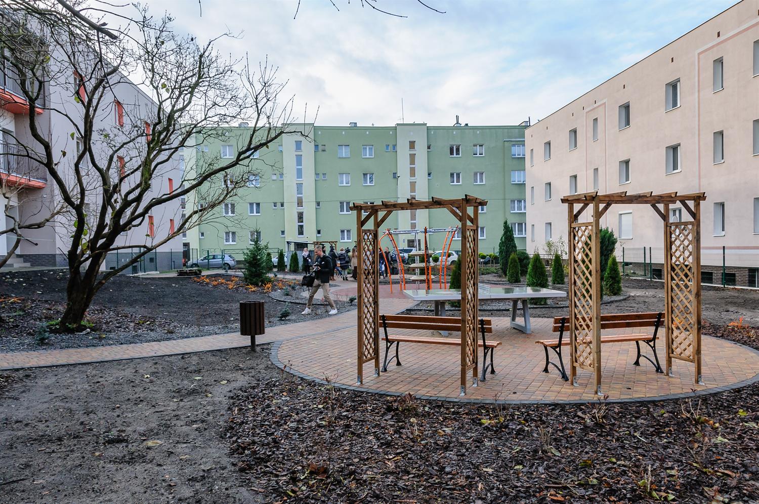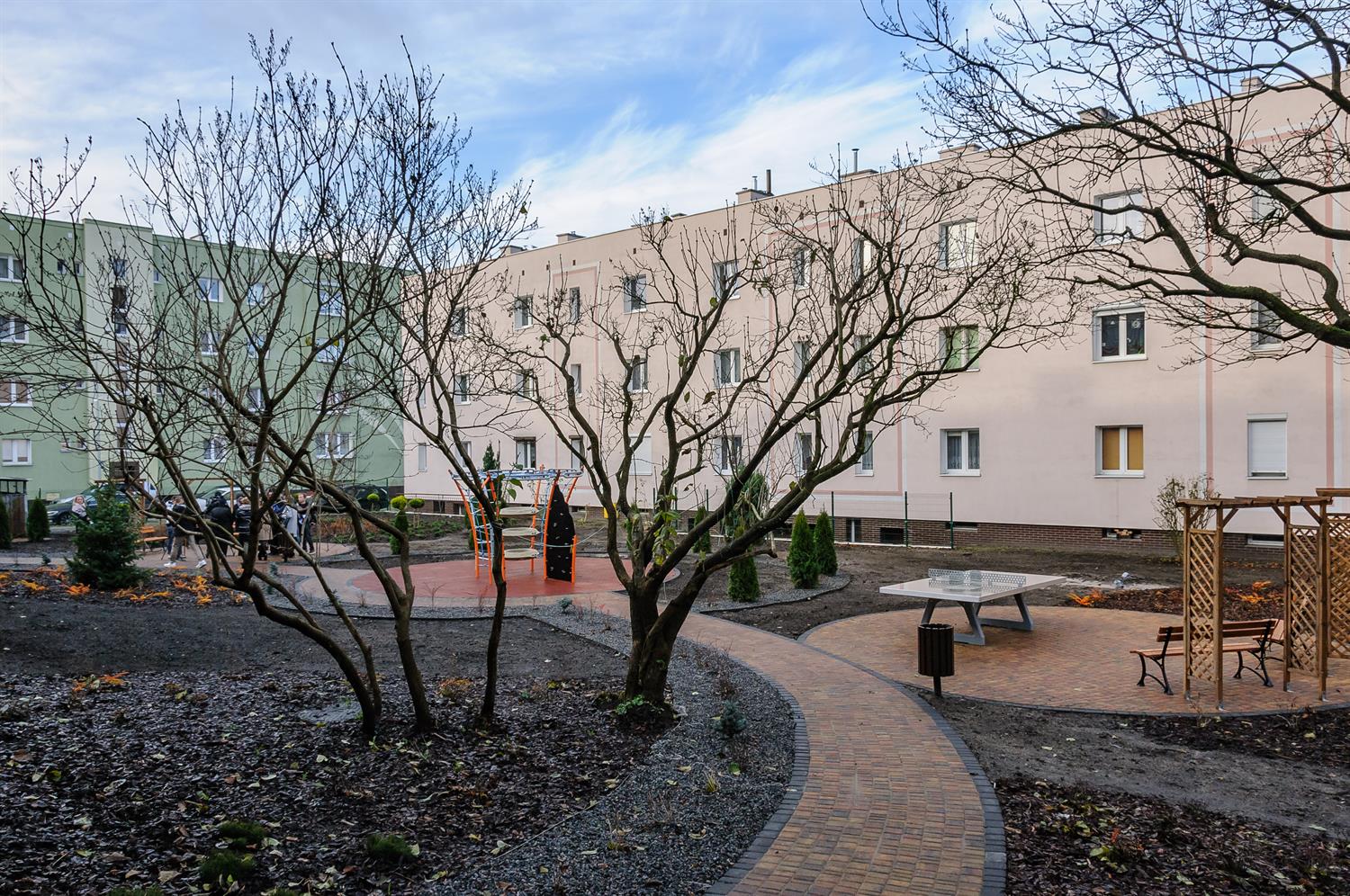 Budynkami, w których część udziałową ma gmina, zawiadują wspólnoty mieszkaniowe. Gorzej z terenami doń przyległymi. Ponieważ własność wspólnot kończy się zwykle na obrysie nieruchomości, podwórka pozostawały w gestii gminy. Ta na ich utrzymanie nie miała wystarczających funduszy, więc gospodarskiej ręki nie było widać: zaniedbane „studnie" z betonu latami szpeciły miasto.