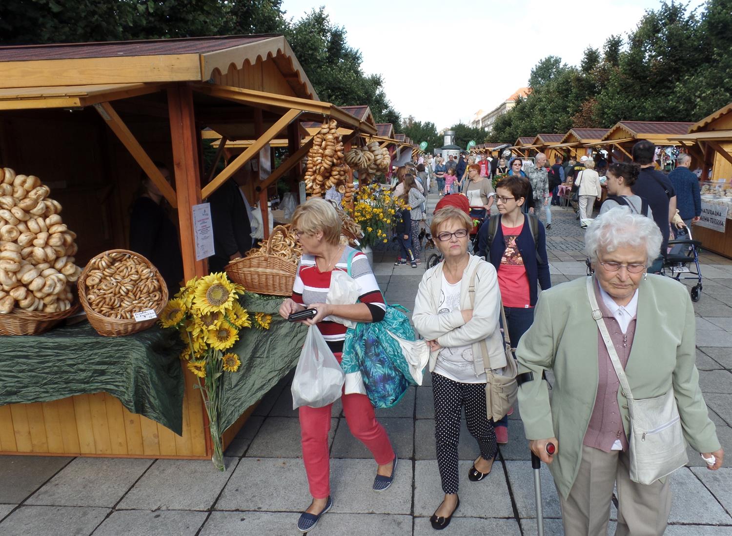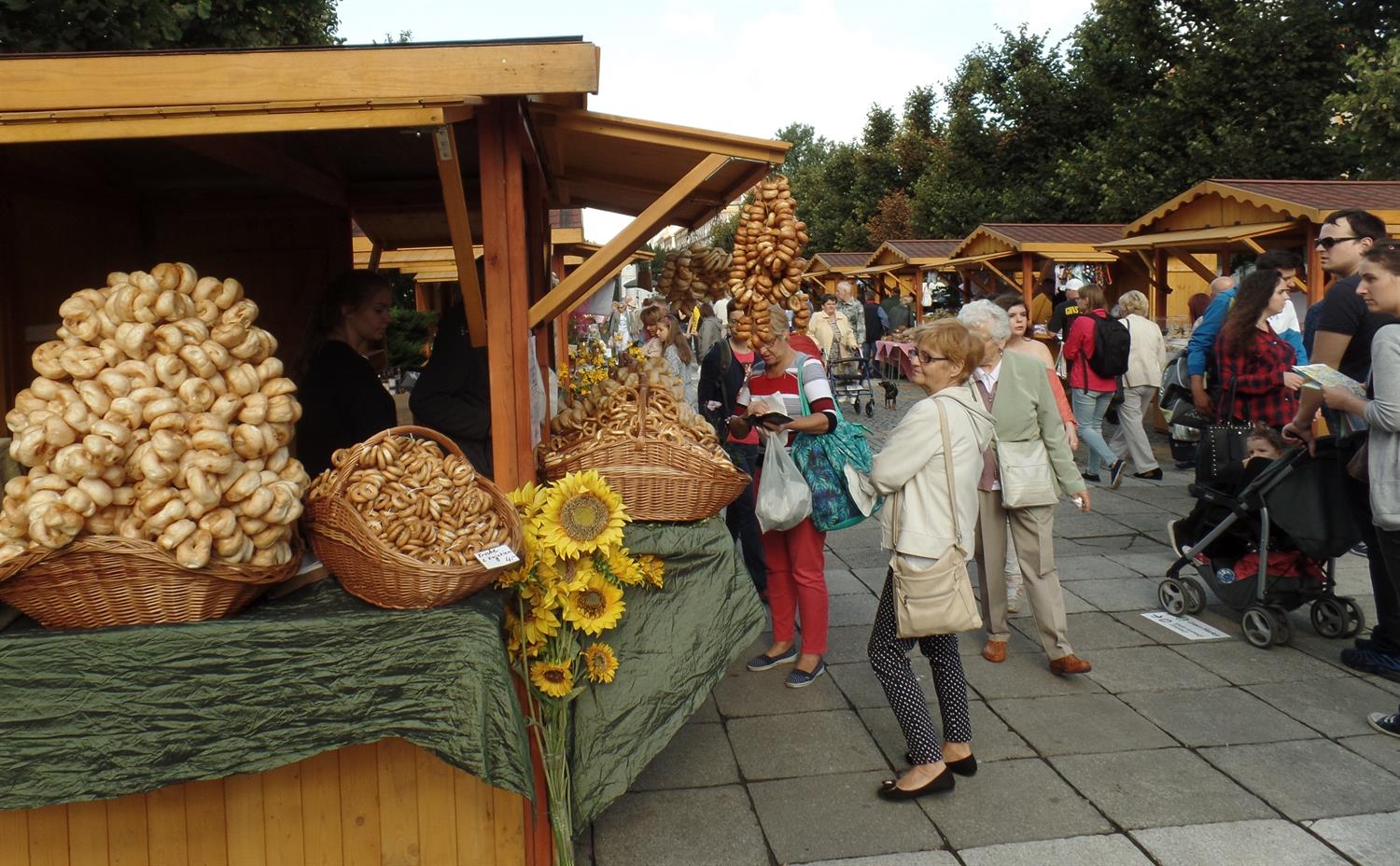 Opodal, czyli na sąsiednim placu, stanęło drewniane miasteczko„Eco Marketu" ze wszystkim, co smaczne i zdrowe: miodami, winami, chlebami i przetworami mięsnymi. Do najchętniej kupowanych zaliczyć można warkocze czosnku i papryki, ferfenuchy i sznury obwarzanków, a też śliwki w odmianach. Najciekawszym ze stoisk jest z pewnością „WINOBRaNIE" z częścią restauracyjną, w jakiej za siedziska służą malowane skrzynki wyściełane poduszkami.