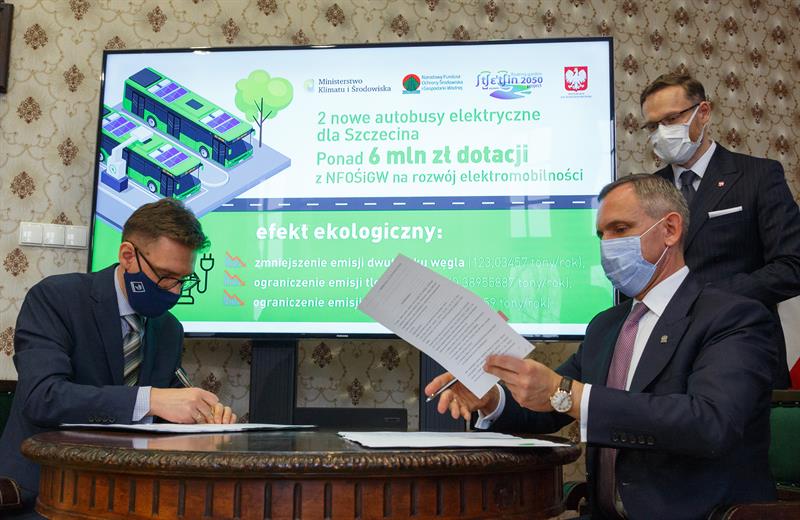 Miało być kolejnych osiem autobusów z napędem elektrycznym w Szczecinie. Nie licząc ośmiu już zakupionych i dostarczonych oraz sześciu zakontraktowanych z dostawą wiosną przyszłego roku. Tymczasem pojawią się ledwie dwa w optymistycznym scenariuszu najwcześniej w 2023 roku. Umowa na dofinansowanie ich zakupu bezzwrotną dotacją z puli środków, jakimi dysponuje na ten cel Narodowy Fundusz Ochrony Środowiska i Gospodarki Wodnej, podpisana została w poniedziałek (8 bm.) i opiewa na nieco ponad 6 mln zł.