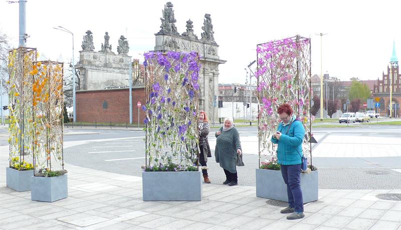 Są też niezawodne szczecińskie florystki: Mira Kwaśniewska, Alina Sendłak i jej „Rękodzielnia Dmuchawce", Małgorzata Nieradka, Małgorzata i Ewa Klaus oraz ich autorskie przestrzenne prace pt. Wiosna. To efektowne instalacje (stoją tuż przy zegarze słonecznym w d. al. kwiatowej) z hiacyntów, tulipanów, jaskrów, niezapominajek, stokrotek, żonkili, bratków i storczyków vanda, a też z ciemierników, trzcin, bali i desek... wyłowionych z Zalewu Szczecińskiego (Trzebież).