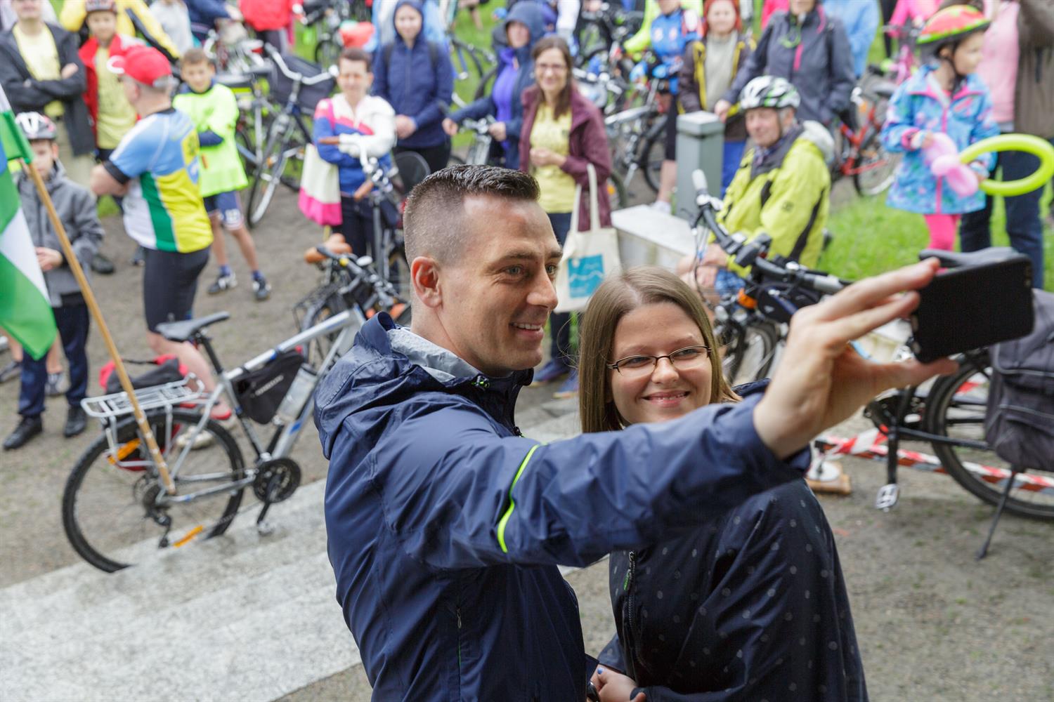 Na zdjęciu: Nie obyło się bez wspólnego zdjęcia z rowerami podniesionymi do góry.
