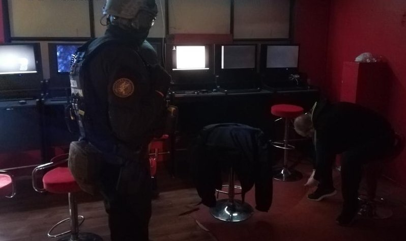 Na podstawie postanowienia prokuratora przeszukano wytypowany lokal, w którym urządzano nielegalne gry. Zabezpieczono siedem komputerów służących do gier hazardowych oraz dodatkowy monitor do obsługi kamer przemysłowych. Ponadto zabezpieczono trzy kamery, telefon komórkowy, modem, wideo rejestrator oraz 930 zł w gotówce.