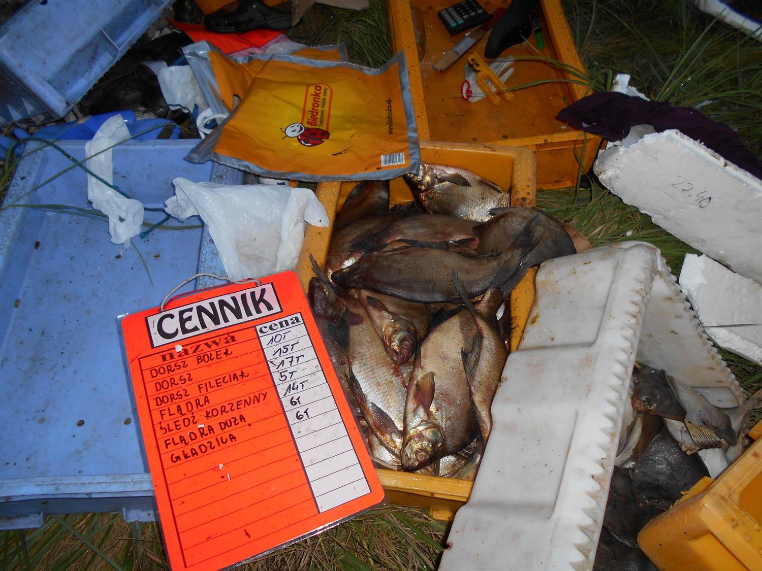 Okazało się jednak, że przy garażowisku ktoś wyrzucił nie tylko ryby, ale także wszystkie akcesoria potrzebne do ich sprzedaży, łącznie z banerem „Świeża ryba”... Ponadto strażnicy znaleźli też wagę (jej wartość to ok. tysiąc złotych), fartuchy, rękawice, kalkulator, zeszyty, pisaki i cennik sprzedaży, a także 30 skrzynek. O swoim cuchnącym znalezisku przy garażach szybko powiadomili drogą alertową administratora terenu, czyli Zarząd Budynków i Lokali Komunalnych w Szczecinie, który zajął się uprzątnięciem miejsca z rybami.