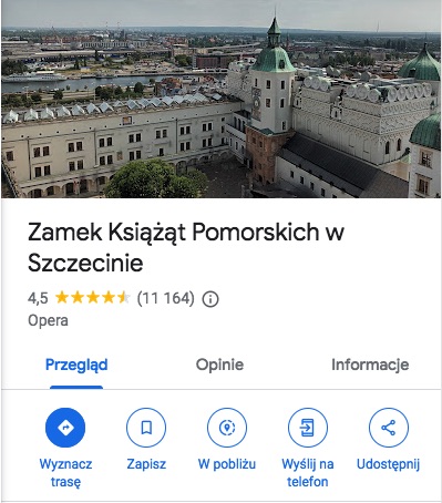 Złota Pinezka Map Google to wyjątkowe wyróżnienie. Wśród laureatów nagrody znalazły się m.in. dwa zamki królewskie – na Wawelu i w Warszawie, a także takie instytucje jak Zamek w Gołuchowie, Zamek Książ, Pałac Branickich czy Muzeum Zamoyskich w Kozłówce. Każdego roku nagrody przyznawane są w innej kategorii – w poprzednich latach były to atrakcje turystyczne czy parki oraz rezerwaty przyrody. W trzeciej odsłonie plebiscytu wyróżniono najbardziej wyjątkowe zamki i pałace. W województwie zachodniopomorskim osoby korzystające z Map Google najwyżej oceniły Zamek Książąt Pomorskich w Szczecinie, przyznając mu ocenę 4,5 na ponad 11 tysięcy opinii.
