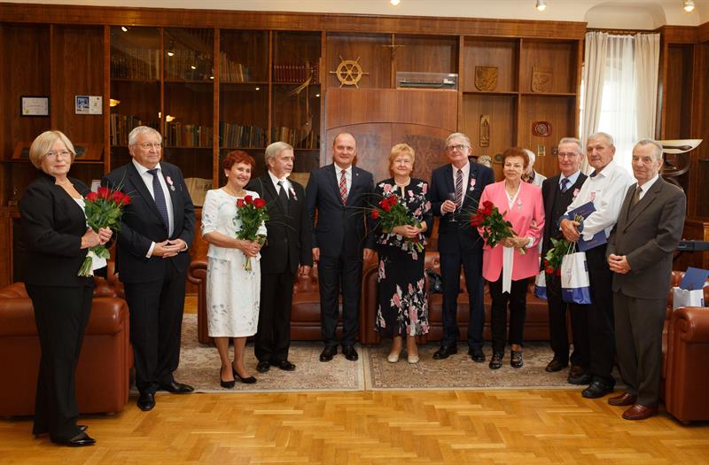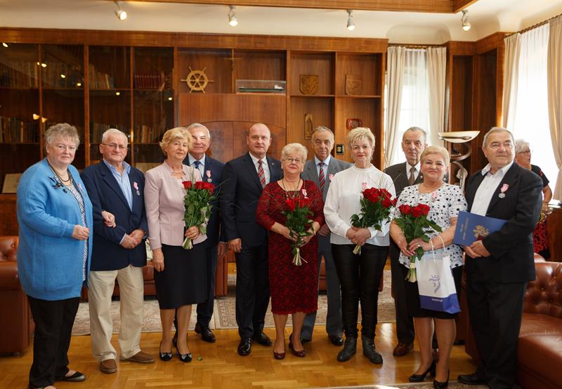 Małżonkowie, obchodzący właśnie złote gody, zostali zaproszeni we wtorek (15 października) na miłą uroczystość do magistratu. Odbyła się tam ceremonia uhonorowania ich Medalami za Długoletnie Pożycie Małżeńskie. Pamiątkowe odznaczenia, nadane przez prezydenta RP Andrzeja Dudę, przekazał prezydent Szczecina Piotr Krzystek. Jubilaci odebrali też dyplomy, gratulacje i upominki.