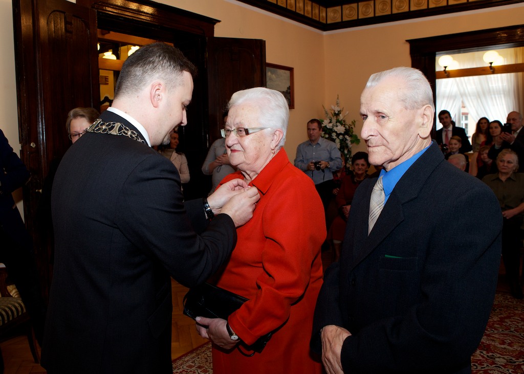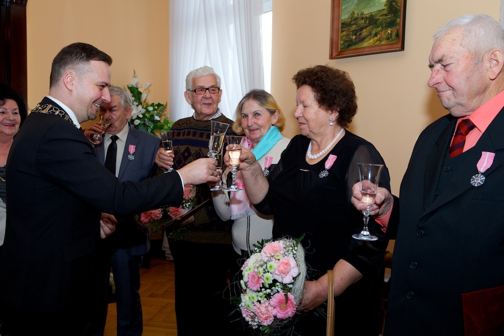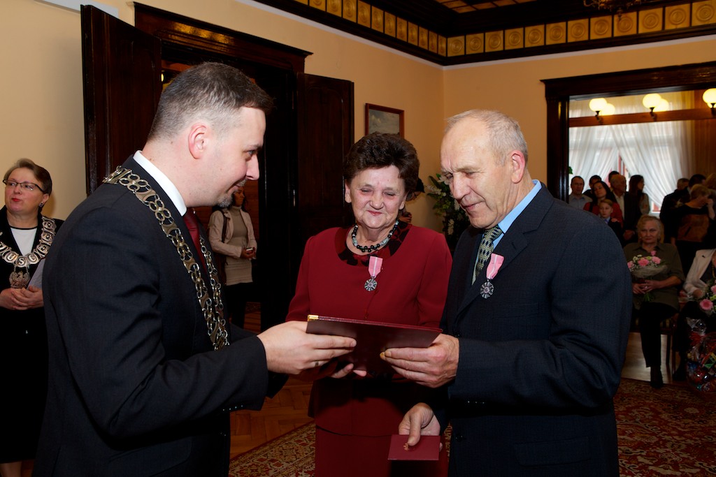 Natomiast głównym akcentem uroczystości było wręczenie pamiątkowych medali za długoletnie pożycie małżeńskie, które nadane zostały przez Prezydenta RP. Ponadto wręczono listy gratulacyjne oraz kosze pełne prezentów.