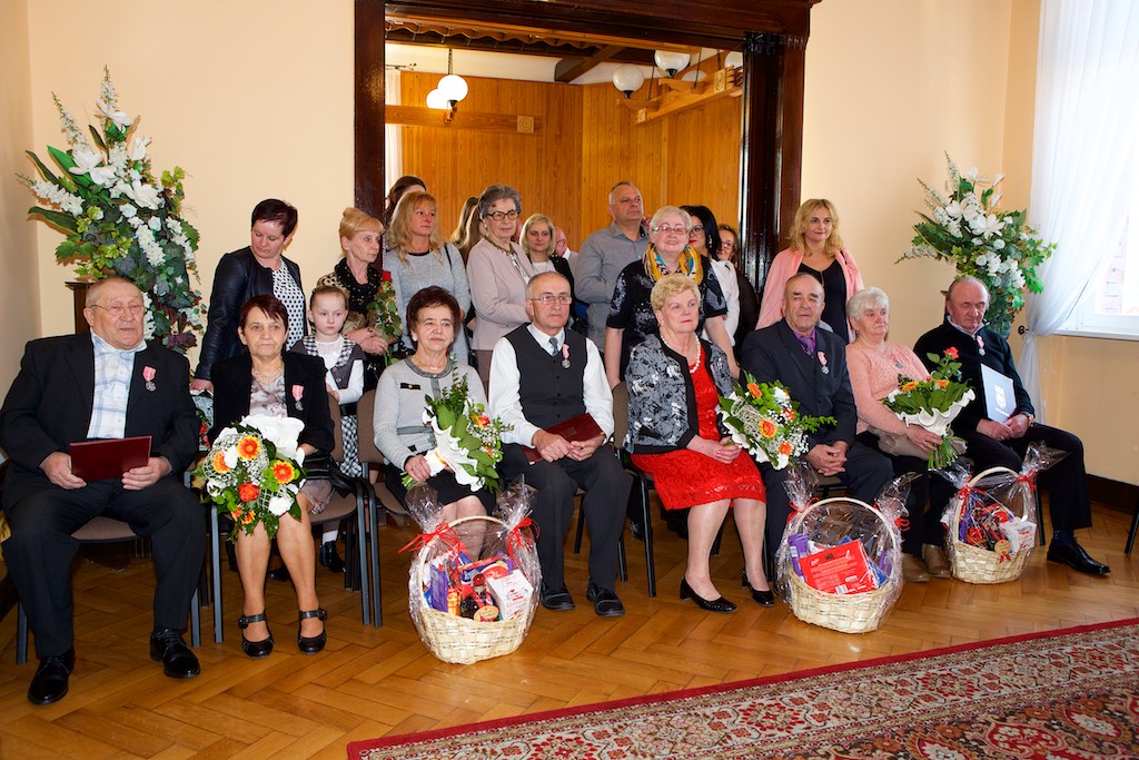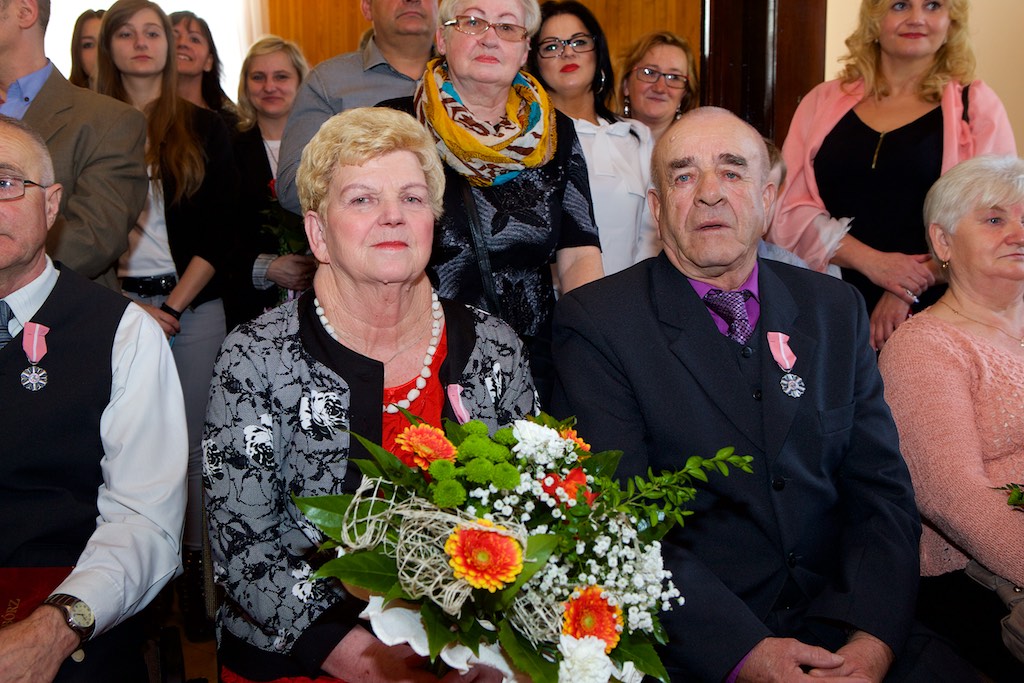 Z tej okazji dostojnym jubilatom w obecności przedstawicieli władz samorządowych, zaproszonych gości i najbliższej rodziny, wręczono pamiątkowe medale. Były też życzenia, kwiaty i zaśpiewano wspólnie tradycyjne ,,sto lat". Nie zabrakło miłych wzruszeń, koszy słodkich upominków oraz pięknej oprawy artystycznej.