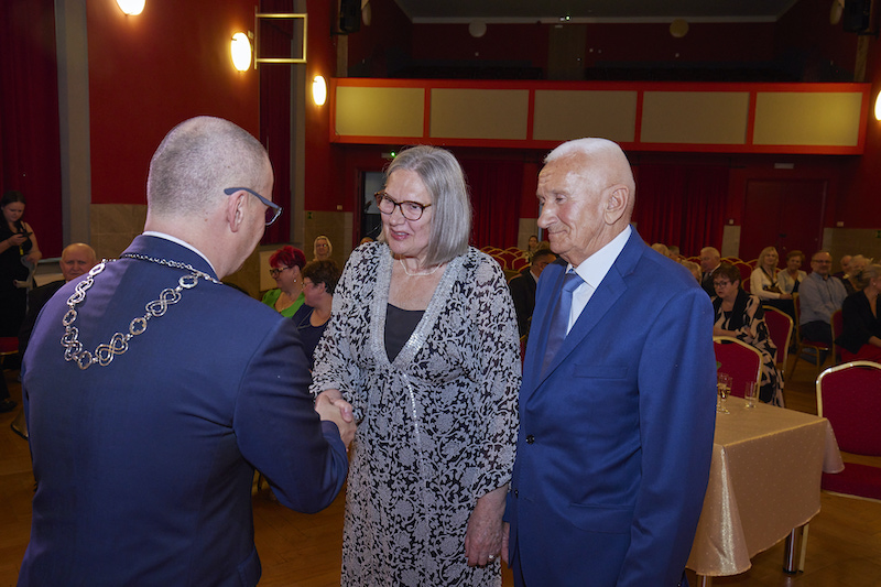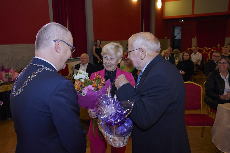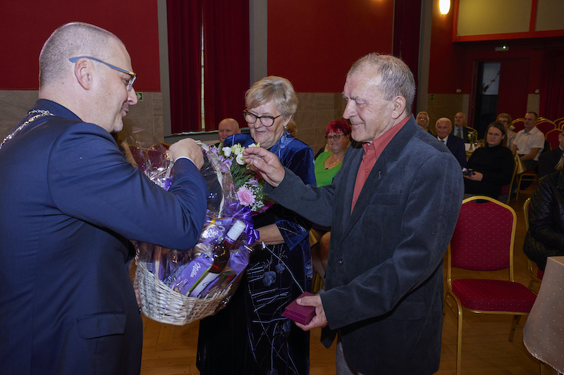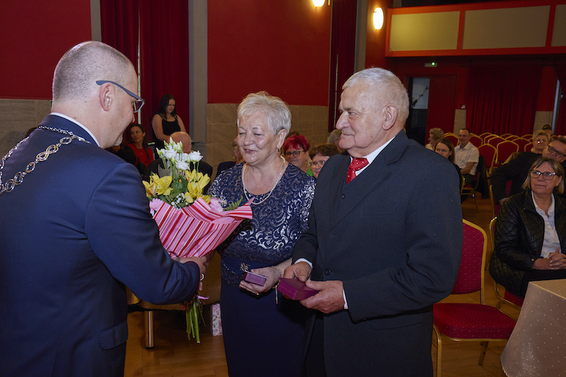 - Przepełnieni miłością i wspólnym zaufaniem, ponad 50 lat temu powiedzieliście słowo ,,tak” i wzajemnie wymieniliście sobie obrączki. Mimo różnych chwil w życiu, raz pięknych, a raz trudnych, przyrzeczenia dane sobie dotrzymaliście. Wasze małżeństwo to dowód wzajemnej miłości i zrozumienia, to wspaniały wzór mądrego życia i przykład, że nawet najcięższe obowiązki, gdy dźwiga się razem, stają się lżejsze – zaznaczył w swoim wystąpieniu Piotr Sobolewski, gospodarz gminy.