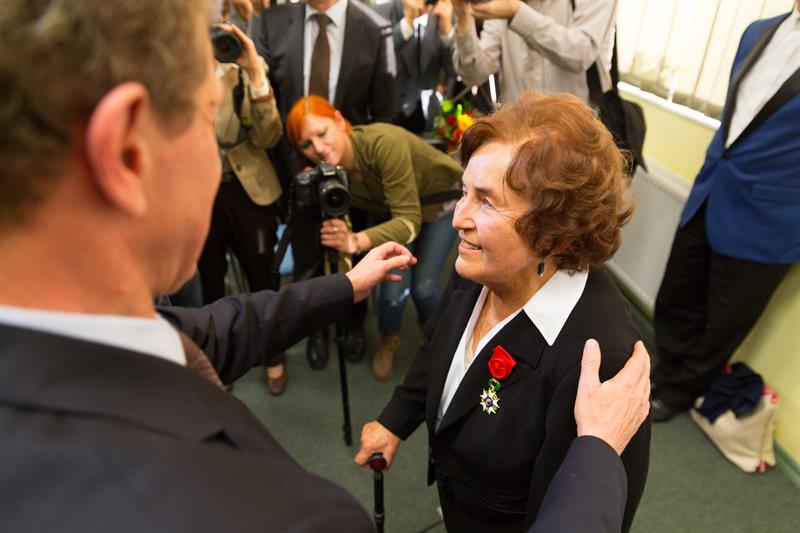 Za swoje zasługi dla kultury polskiej została uhonorowana złotym medalem Gloria Artis.