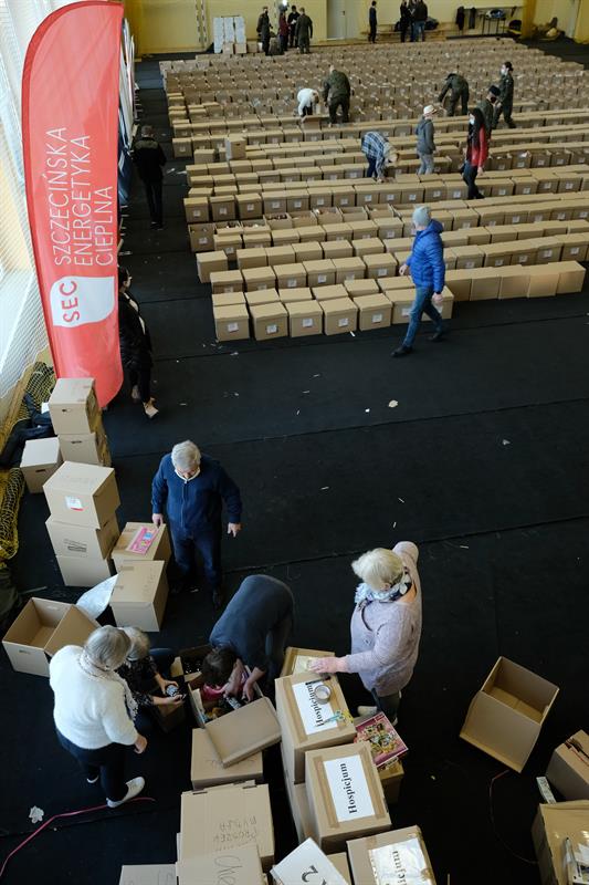 Ponad 1300 paczek wyruszy w niedzielę z samego rana ze Szczecina do rodaków na Kresach. Wolontariusze wspólnie z wojskowymi od samego rana wypełniają pomocowe paczki w sali gimnastycznej 14. Zachodniopomorskiej Brygady Obrony Terytorialnej przy ulicy Metalowej.