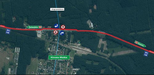 Te utrudnienia są konieczne ze względu na przebudowę drogi obejmującą m.in. odsunięcie jezdni od zabudowań Klinisk Wielkich i budowę nowego węzła drogowego. Kolejne zmiany organizacji ruchu będą wprowadzane w najbliższych tygodniach również w rejonie przebudowywanego węzła Rzęśnica i budowanego przejścia dla zwierząt na południe od węzła Goleniów Południe. Zakończenie robót planowane jest w kwietniu 2021 roku.