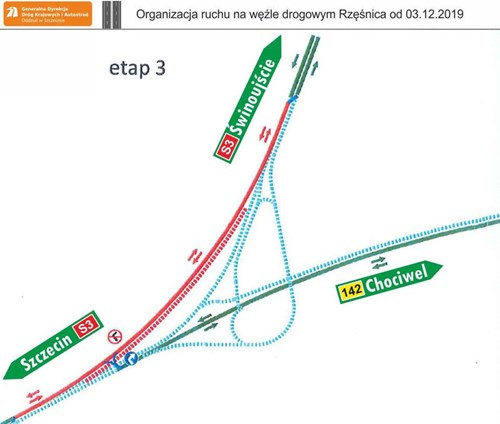 - Wjeżdżając na węzeł od strony Chociwla, będzie można skręcić tylko w prawo, czyli jazda na Szczecin będzie możliwa poprzez zawrócenie na położonym 12 km dalej węźle Goleniów Południe -wyjaśnia rzecznik. - Z tego powodu już od skrzyżowania DK20 z DW142 w Lisowie i na połączeniu DW142 z DW 106 w Łęczycy będą tablice ze wskazaniem zalecanego objazdu w kierunku Szczecina przez Stargard.