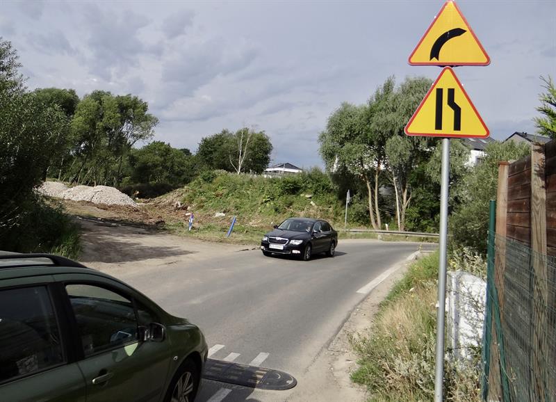 Na samym łuku jezdni nad strumieniem pas asfaltu z jezdnią jest tak wąski, że nawet dwa auta osobowe jednocześnie nie są w stanie się wyminąć na tym łuku. Trzeba nie tylko zwolnić, a nierzadko się zatrzymać, by móc następnie przejechać. To jednocześnie rewir niebezpieczny dla pieszych, bo nie ma tam chodników, a pobocza po obu stronach jezdni, którymi można tam przemknąć, jeszcze węższe.