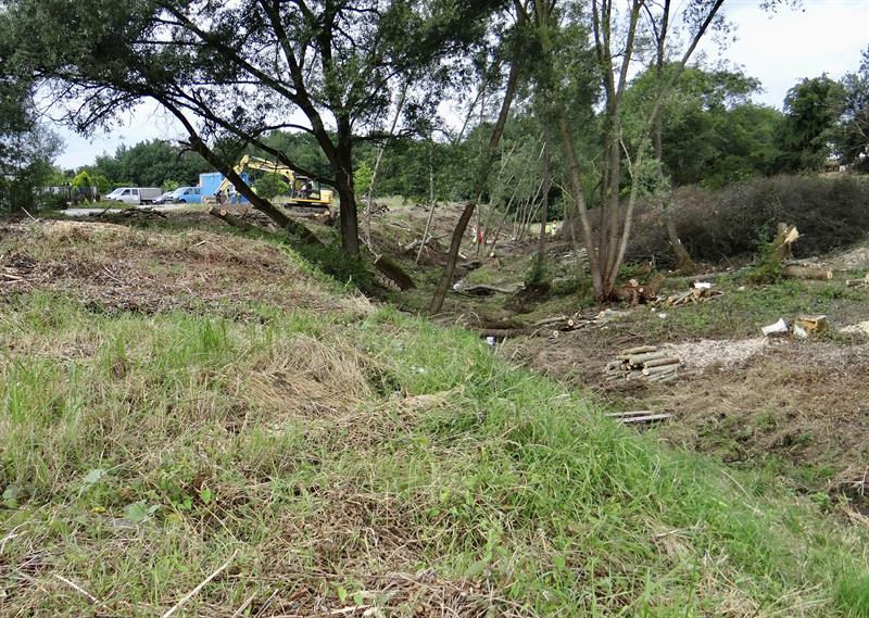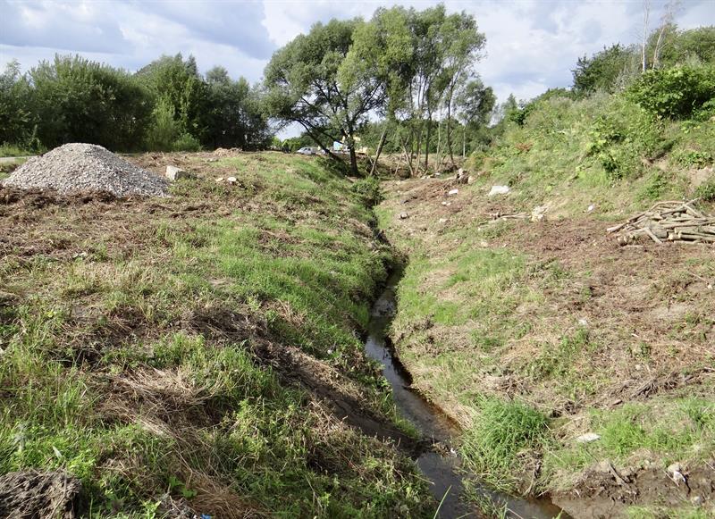 Karczowanie pasa zarośli i chaszczy oraz pierwsze prace porządkowe w rejonie strumienia Warszewiec od strony ul. Fińskiej, gdzie cały teren leżący dotąd odłogiem służył głównie za wysypisko wszelkich odpadów, nie wyłączając gruzu budowlanego, już trwają. To przygotowania do właściwej regulacji samego strumienia i budowy w jego sąsiedztwie zbiornika retencyjnego. Kontrakt na tę część inwestycji zawarty został z firmą Usługi Transportowo Budowlane Bernard Baranowski. Na zrealizowanie tych prac wykonawca ma nie więcej niż 16 miesięcy od dnia podpisania z nim umowy, a ich koszt powinien zamknąć się w kwocie 3 540 560,38 zł brutto.