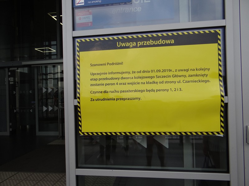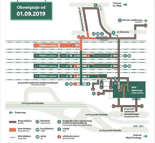 Obowiązuje także nowa organizacja ruchu na stacji Szczecin Główny. Dojście na perony zapewniono od ulicy Kolumba i ulicy Owocowej.