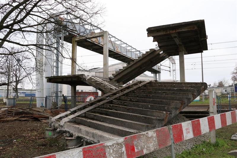 Fabryki mebli dawno już nie ma, na przejeździe kolejowym jest zdecydowanie mniej pieszych, problemem stały się samochodowe korki w tym rejonie, a tego problemu kładka nie rozwiąże. Kilka lat temu władze gminy postanowiły rozebrać zbędny, a wymagający gruntownego remontu obiekt. Prace postanowiono wykonać w ramach budowy nowego dworca kolejowego w Goleniowie. W listopadzie zgromadzono komplet niezbędnych dokumentów, w tym uzgodnienia z PKP. Prace rozbiórkowe ruszyły w minioną środę, potrwają jeszcze kilka dni. Roboty prowadzone są nocą, kiedy ruch kolejowy jest znacznie mniejszy niż za dnia. Rozbiórka kładki nie zakłóca ruchu na torach.