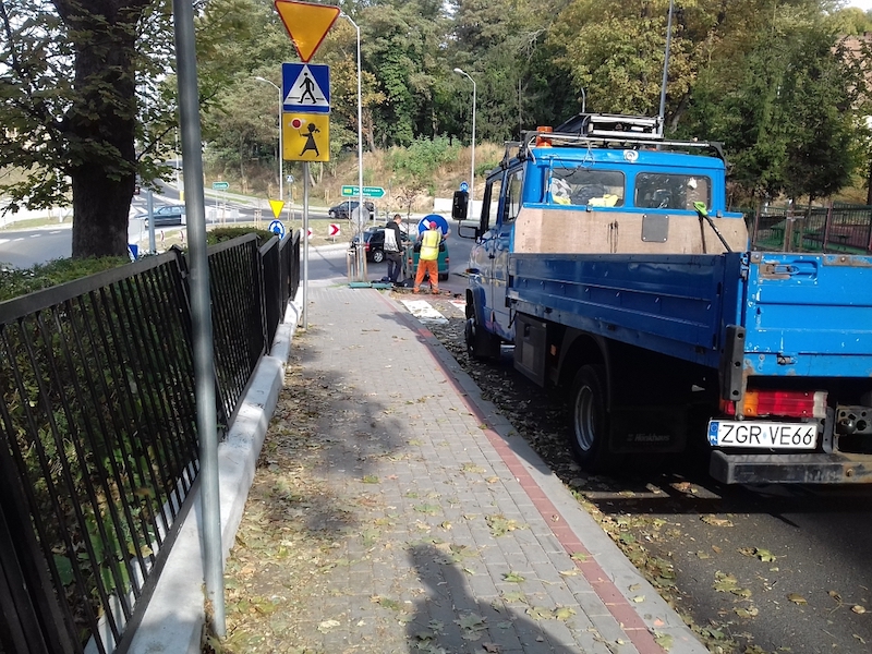 Przy zjeździe ulicą 9 Maja w Gryfinie (droga powiatowa) w stronę ronda na skrzyżowaniu ulic: Wojska Polskiego, Pomorskiej i Kolejowej (w ciągu drogi wojewódzkiej 120) zamontowano w poniedziałek (1 października) pionowy znak drogowy „nakaz jazdy z prawej strony znaku”.