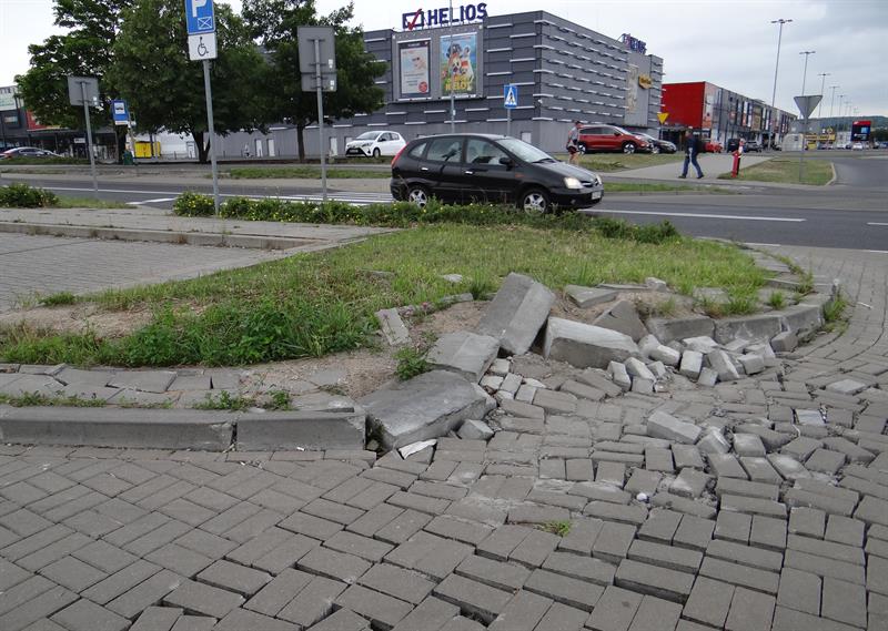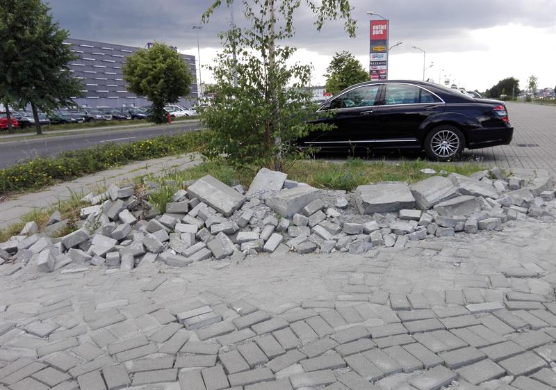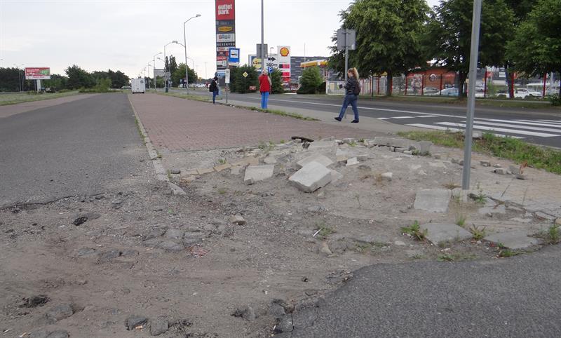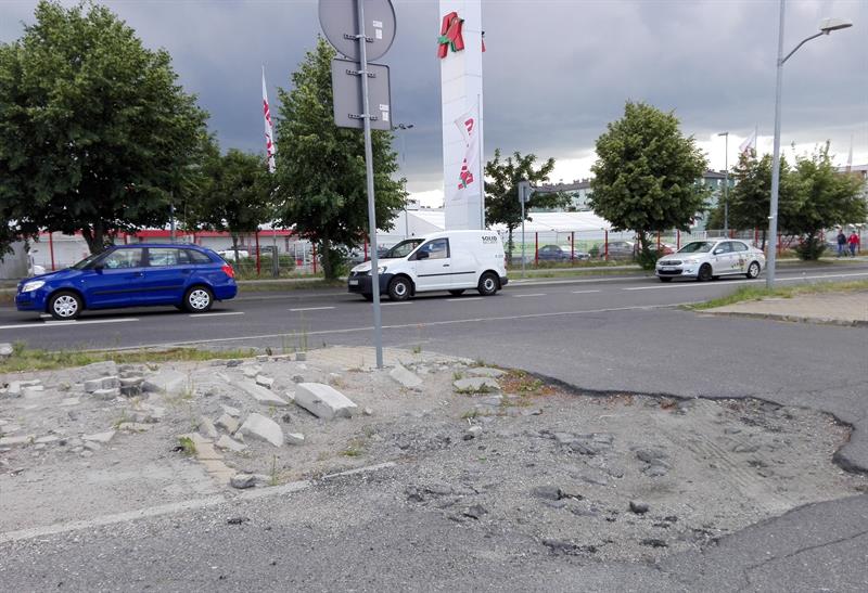 Zdemolowane zostały już przez ciężkie wozy niemal wszystkie wjazdy i wyjazdy parkingowe, pozajeżdżane są pobocza zieleni, a nawet zlokalizowane tuż przy nich i wyznaczone przejścia dla pieszych.