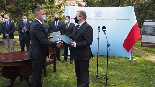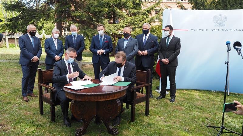 Umowę podpisali: Paweł Mirowski, wiceprezes Narodowego Funduszu Ochrony Środowiska i Gospodarki Wodnej oraz Andrzej Bednarek, starosta policki Fot. Agnieszka Spirydowicz