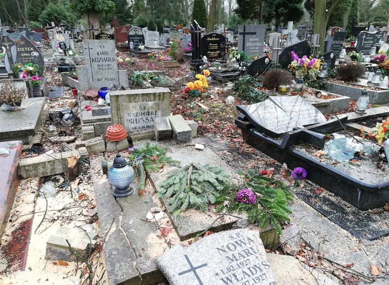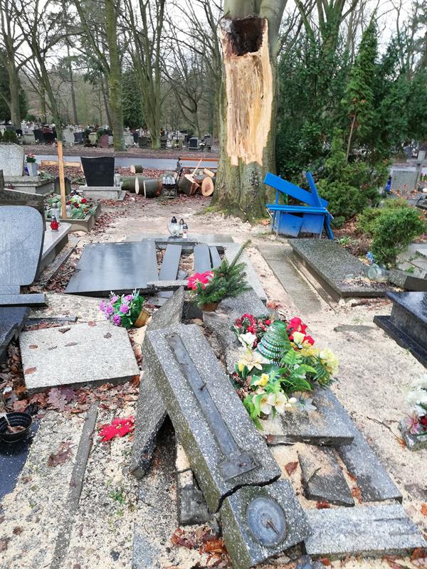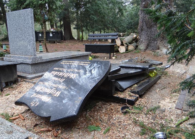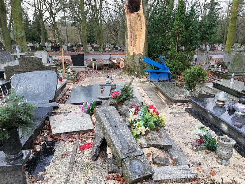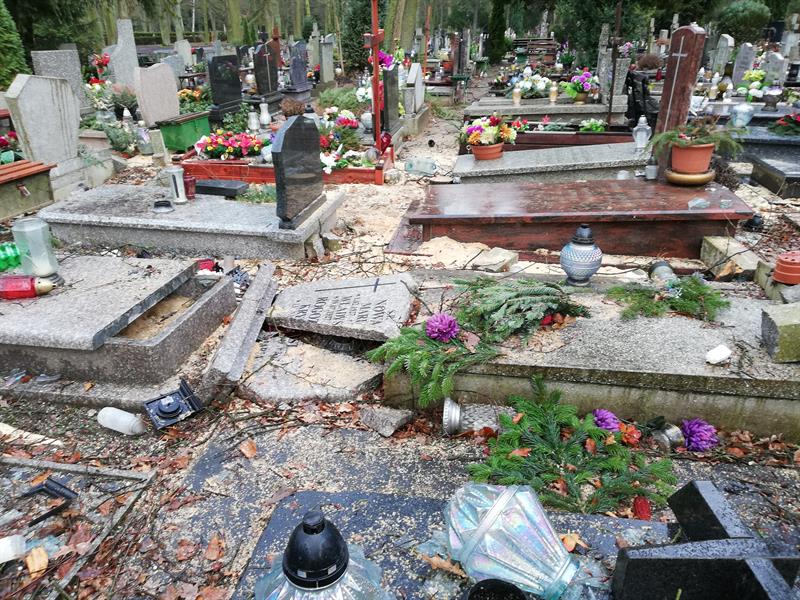 Na zdjęciach: Obraz szkód i zniszczeń na szczecińskim Cmentarzu Centralnym