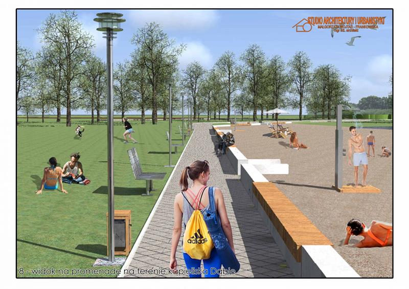 Kąpielisko ma się zmienić. Diametralnie i na lepsze. Czyli jak? W projekcie budowlanym przewidziano m.in. remont i rozbudowę zewnętrznej instalacji wodociągowej, budowę instalacji i kanalizacji sanitarnej wraz przyłączeniem do miejskiej sieci kanalizacyjnej, modernizację i rozbudowę oświetlenia wzdłuż ciągów pieszych, remont i rozbudowę zewnętrznej instalacji energetycznej, montaż pomostu pływającego dla służb ratowniczych, a zatem już nie ogólnodostępnego. Następnie: postawienie budynku socjalno-sanitarnego, remont i przebudowę ciągów pieszych, przy których zostanie postawionych sporo ławek, a ponadto renowację placu przy plaży, budowę tzw. wiaty gastronomicznej, remont istniejącego murka z budową trejaży, montaż stołów szachowych i drewnianych piknikowych, wykonanie placu zabaw dla małych dzieci oraz starszych. Na terenie kąpieliska zostanie również zorganizowana plenerowa siłownia, parking rowerowy ze stojakami, wykonany nowy murek wygradzający plażę i wreszcie (po skandalu związanym z wycinką wiekowych drzew przy plaży, jeszcze przed wejściem w życie lex Szyszko) efektownie urządzona zieleń.