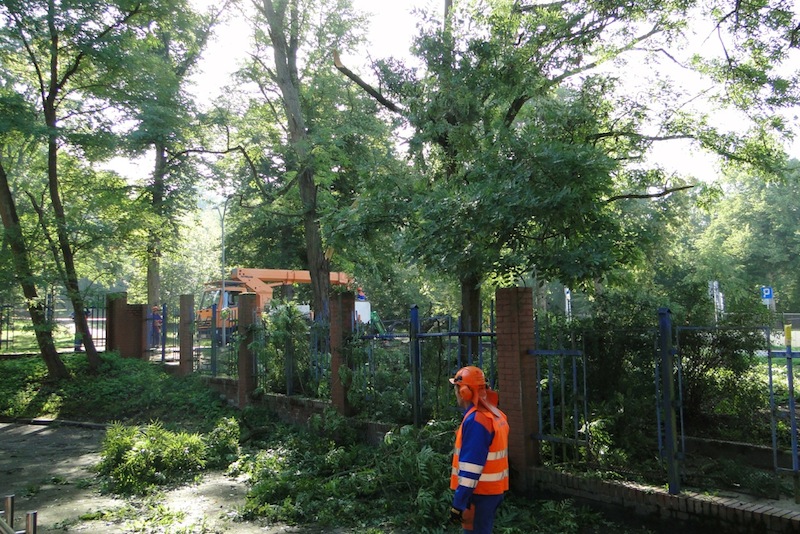 „Ja ci, k...a, zrobię zdjęcia” – z taką agresją słowną spotkała się nasza dziennikarka, kiedy fotografowała wtorkową (1 września) wycinkę drzew w sąsiedztwie miejskiego parku i w pobliżu hali sportowej w Gryfinie.