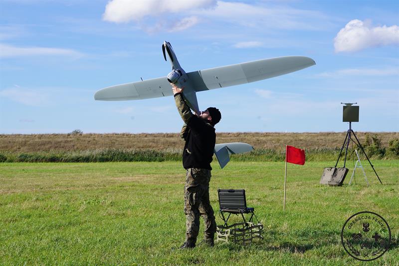 - Terytorialsi z Łodzi od kilku dni z różnych miejsc wzdłuż rzeki rozstawiają i uruchamiają nowoczesny zestaw bezzałogowy bsp FlyEye produkowany w polskiej firmie zbrojeniowej WB - informuje Marcin Górka z biura prasowego 14. ZBOT. - Bezpilotowiec może unosić się nad ziemią na pułapie od 100 do 600 metrów i patrolować obszar w zasięgu 30 kilometrów przez 150 minut. Obraz, który rejestruje za pomocą specjalistycznej głowicy optycznej przekazywany jest na żywo do centrum dowodzenia. Dzięki temu ewentualne uszkodzenia wałów przeciwpowodziowych, przecieki czy rozlewiska Odry są monitorowane w czasie rzeczywistym i punktowo, na bieżącą do ich usuwania można kierować pododdziały wojskowe czy strażaków.