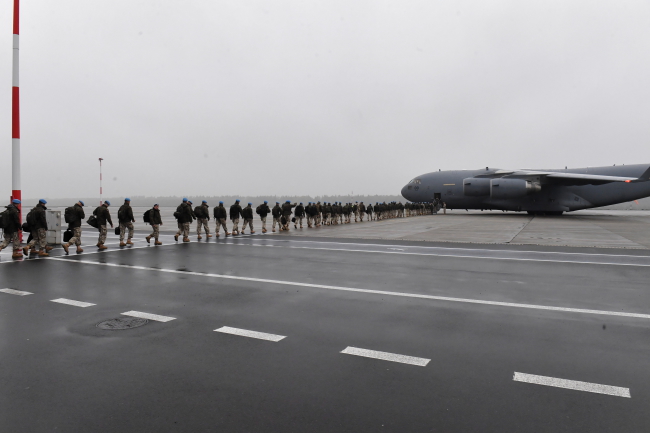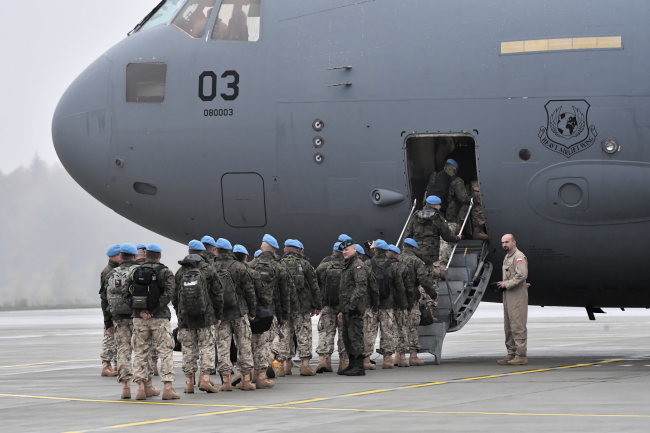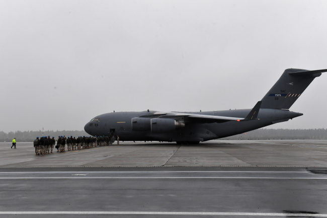 Na zdjęciu: Żołnierze polecieli wojskowym samolotem transportowym Boeing C-17 Globemaster III.