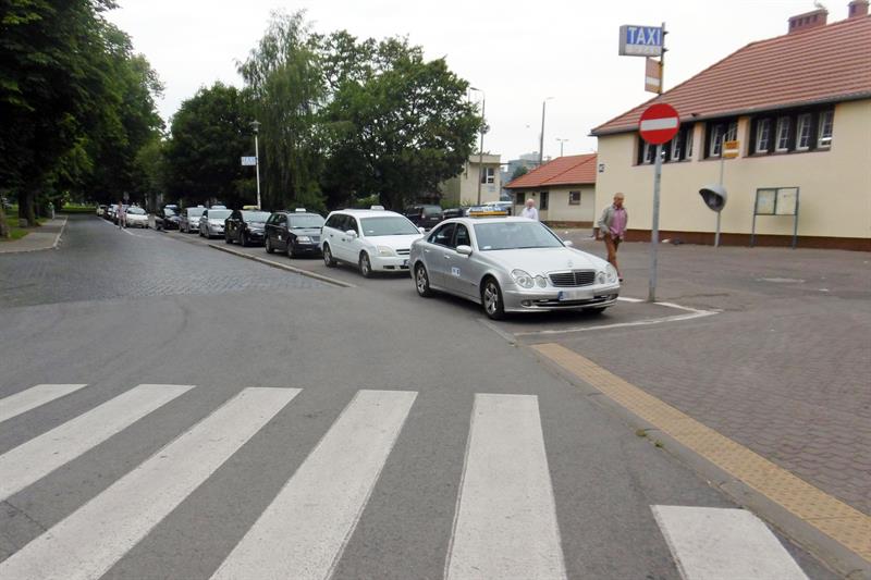 Na zdjęciu: Postój taxi przed kołobrzeskim dworcem kolejowym