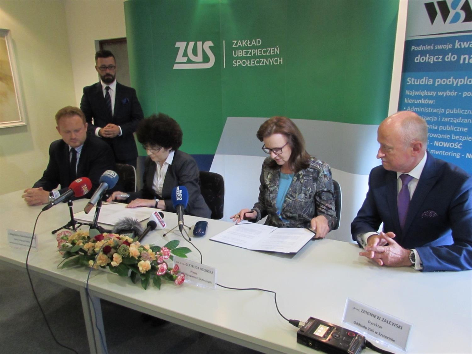 Umowę o współpracy podpisano w czwartek (14 września) pomiędzy Zakładem Ubezpieczeń Społecznych a Wyższą Szkołą Administracji Publicznej w Szczecinie. Jak podkreśliła prezes ZUS, prof. Gertruda Uścińska, taka współpraca jest w interesie dwóch stron.
