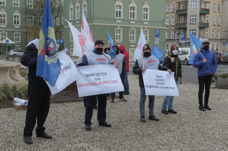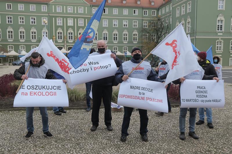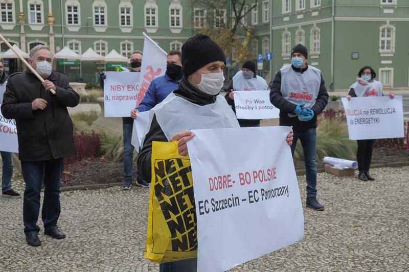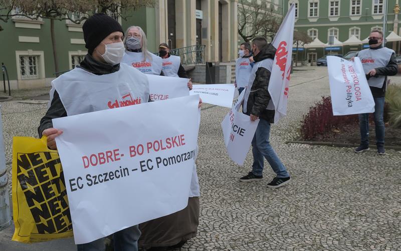 Blisko 20 związkowców protestowało we wtorek przed magistratem w obronie miejsc pracy w elektrociepłowniach Szczecin i Pomorzany (PGE). Nie godzą się na wejście kapitałowe Miasta Szczecin do spółki New Cogen , która ma stworzyć w ciepłowni Dąbska "jednostkę kogeneracyjną".