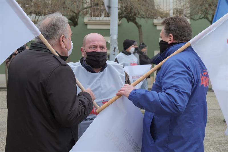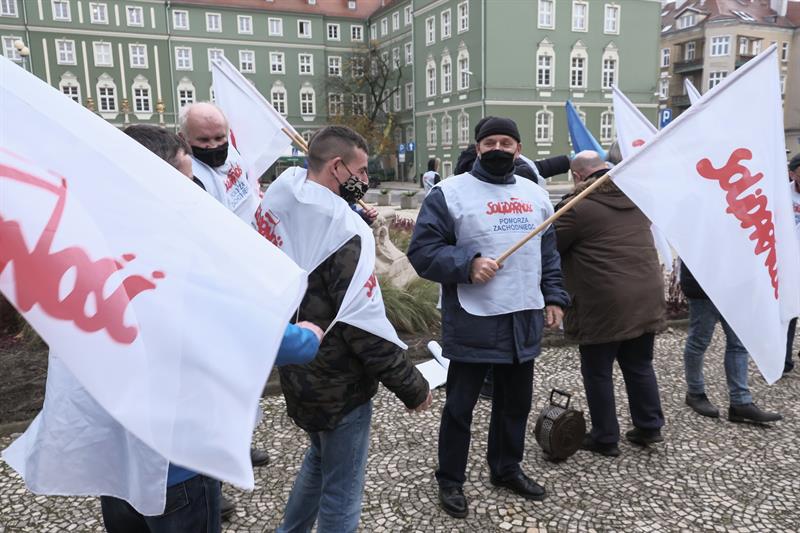 Na zdjęciu: W proteście przez Urzędem Miasta Szczecin udział wzięły organizacje związkowe ZEDO