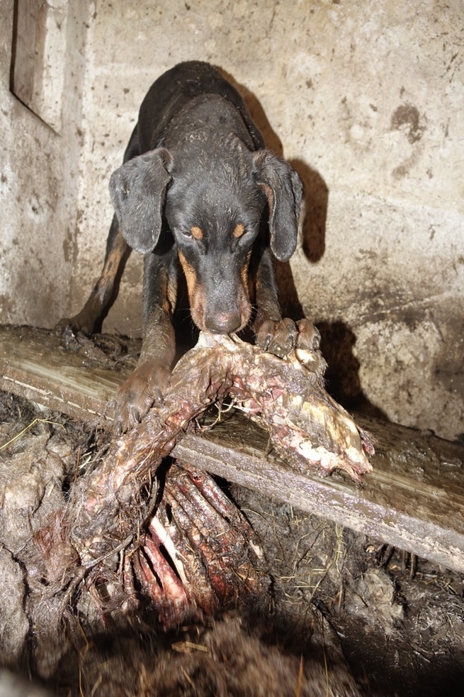 Relacja przedstawicieli Pogotowia dla Zwierząt, którzy byli na miejscu, jest wstrząsająca. Na wielu zdjęciach widać zaniedbane, skrajnie wychudzone, cierpiące zwierzęta – w sumie w skrajnych warunkach żyło tu 120 psów, 9 koni, krów oraz koty. „Psy poukrywane są w komórkach. Z góry widać poranione konie, padają z choroby i wyczerpania, sceny podczas interwencji są niczym z horroru. (…) wygłodzone psy są pozamykane w komórkach, chodzą po truchłach innych, padłych wcześniej. Odór jest straszny. Inne wygłodzone psy z tej pseudohodowli wyciągają z komórek resztki zwłok. Tym się żywią, ponieważ w tej fabryce nie ma karmy dla psów, aby przeżyły muszą zjadać inne. Jest także duża liczba szczeniaków, pozamykanych w piwnicy, w ciemności, jamniki, kundelki, dobermany oraz psy w typie rasy shar pei. Brodzą w gnojowicy. (…) Część zwierząt jest martwa. Utopiły się w gnojówce, która na terenie posesji sięga miejscami około metra” – opisywano to, co zastano na miejscu.