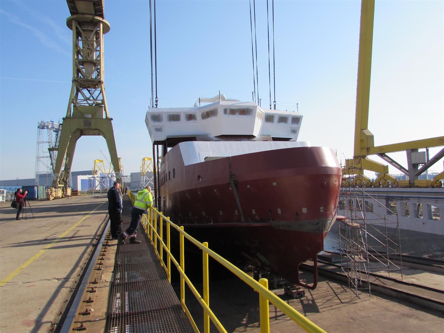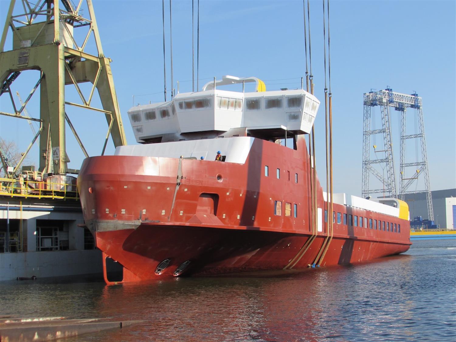 Ma blisko 60 m długości i ok. 13 m szerokości. Ten niewielki, ale innowacyjny prom zwodowano w piątek (29 września) w Szczecińskim Parku Przemysłowym – Stoczni Szczecińskiej. Jednostka zeszła do wody z pochylni Wulkan. Głównym wykonawcą jest duńska stocznia Søby Vaerft, a podwykonawcami – szczecińskie firmy Spawrem i Ridson.