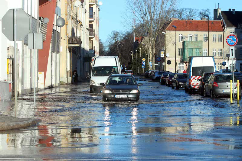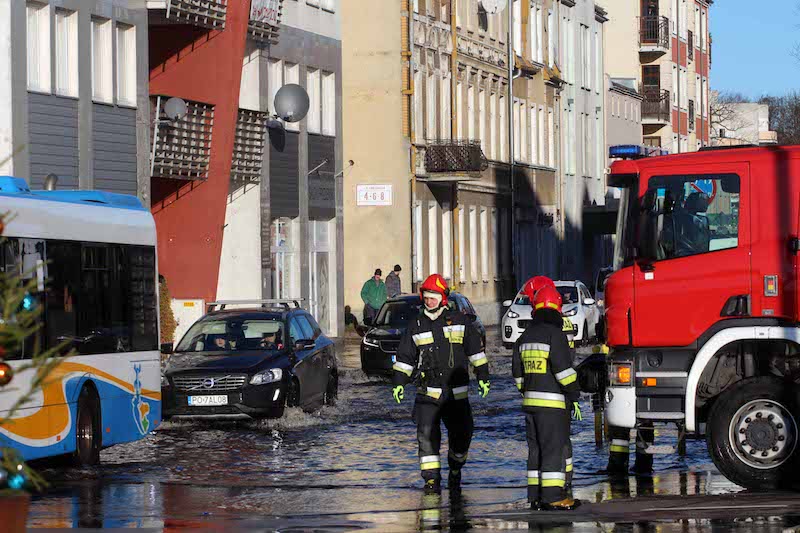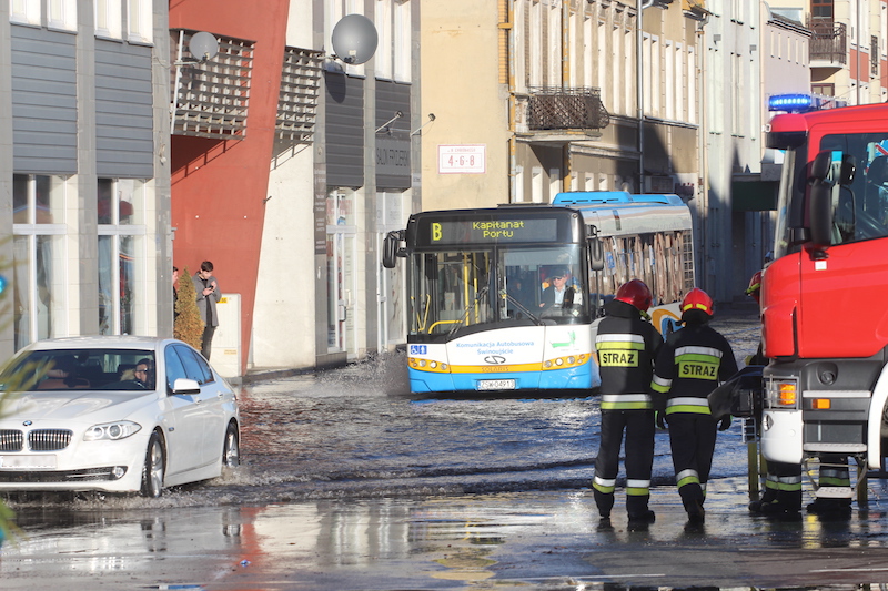 Silne podmuchy wiatru (w porywach do 90 km/h) sprawiły, że tej nocy do kolejnych interwencji musieli wyjeżdżać świnoujscy strażacy. Trzeba było m.in. usunąć powalone drzewo przy ul. Barlickiego. W południe strażacy rozpoczęli również prace przy ul. Bolesława Chrobrego, która jest zalana wodą.