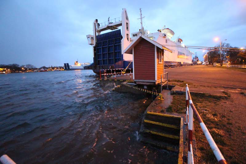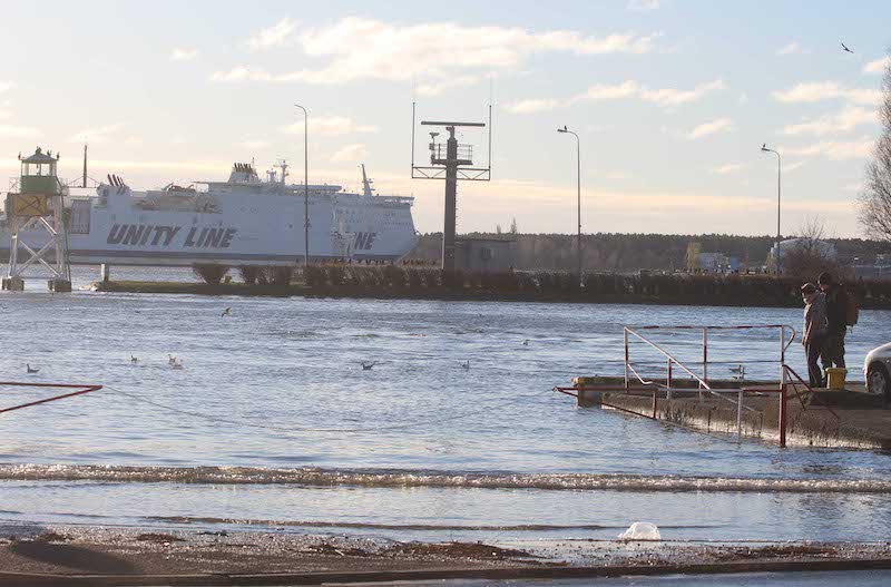 Niespokojny Bałtyk zalał już świnoujską plażę, falochron zachodni i podchodzi coraz wyżej pod wydmy. Poziom wody w kanale przekroczył stan alarmowy. Na ulicach kurortu jest coraz więcej wody. Odwołano także wyjścia w morze promów pływających do Skandynawii.
