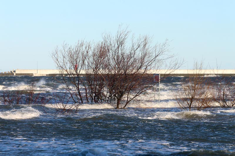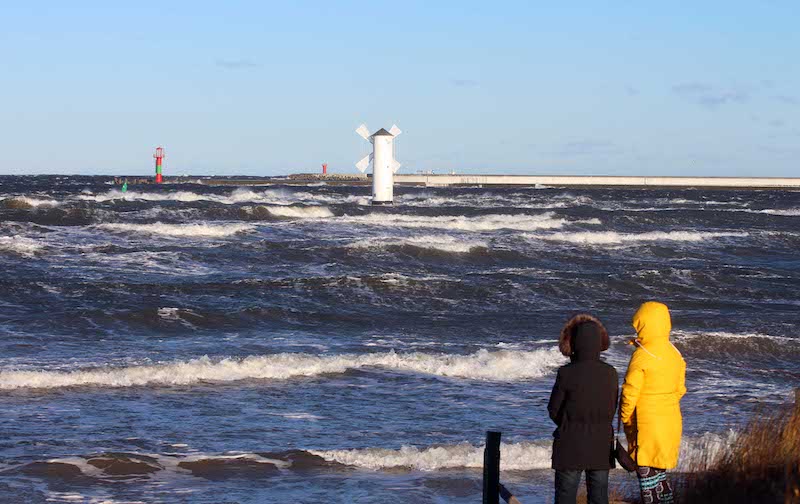 Przez całą noc wiał silny wiatr. Problem z kursowaniem miały promy. Mieszkańcy narzekali z rana na duże kolejki samochodowe przed przeprawami. Żywioł daje się odczuć obecnie przede wszystkim na plaży, gdzie wieje potężny wiatr, a woda podchodzi bardzo wysoko i zalewa wydmy.