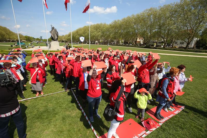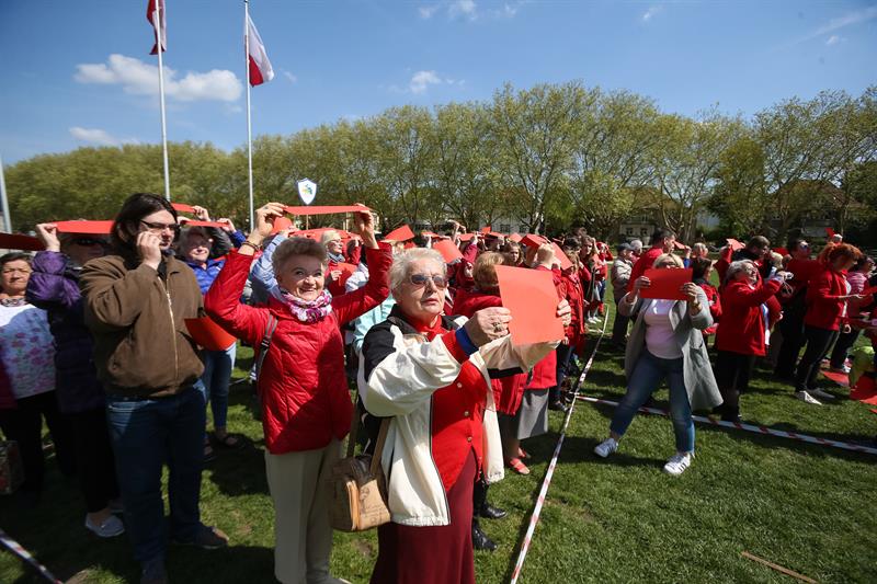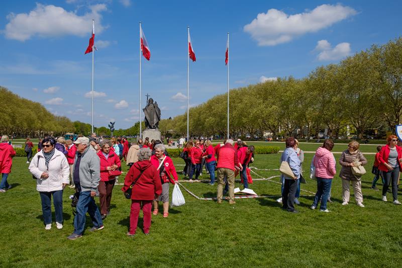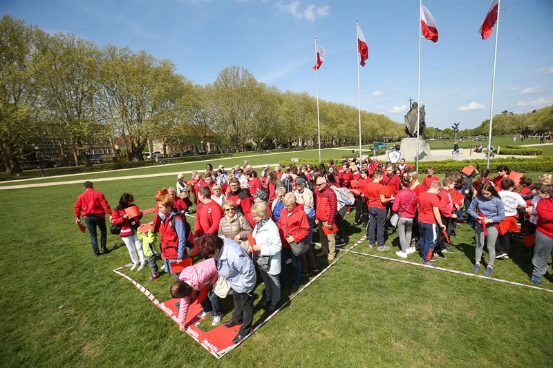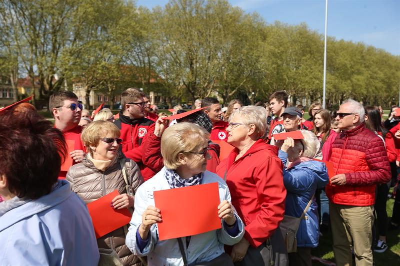 Żywy znak Czerwonego Krzyża utworzyło na Jasnych Błoniach kilkudziesięciu ubranych na czerwono ochotników. Wydarzenie było główną częścią obchodów setnej rocznicy istnienia Polskiego Czerwonego Krzyża, organizowanych przez zachodniopomorski oddział stowarzyszenia.