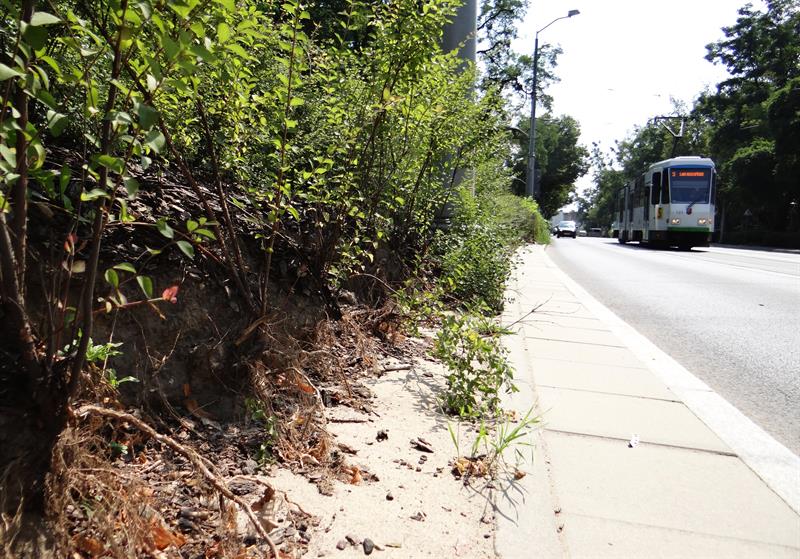 Zostały posadzone na stromej piaszczystej skarpie. I obsypane korą. Ta odpływała z każdym kolejnym deszczem, zatykając odpływy przyulicznej kanalizacji. Po ostatnich ulewach na jezdnię ul. Arkońskiej - od ul. Wojciechowskiego w stronę zabytkowej wiaty...