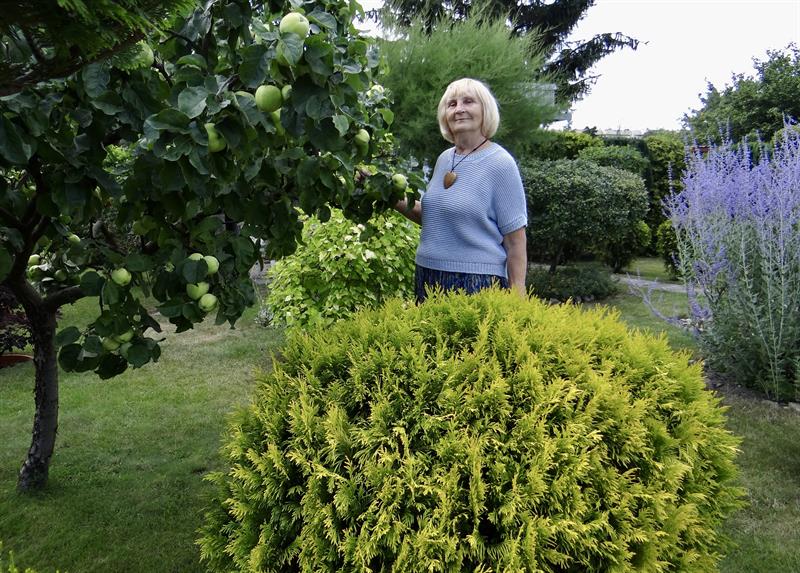 Pod rozłożystym świerkiem srebrnym i przy tamaryszku, gdzie urządzony jest kącik wypoczynkowy nieopodal altany, w cieniu osłaniającym przed palącymi promieniami słońca najlepiej latem podziwiać zielono-kwiatową enklawę pani Marii Matz. Choć nie tylko...
