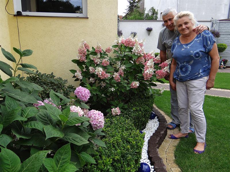 Wiodą do niego wąski chodnik i zielono-kwiatowa rabata. Od ulicy jego zwiastunem są plama wypielęgnowanego soczyście zielonego trawnika i donice z kompozycjami z pelargonii i mrozów. O urządzonym przez siebie rodzinnym ogrodzie przy ul. Szybowcowej w...