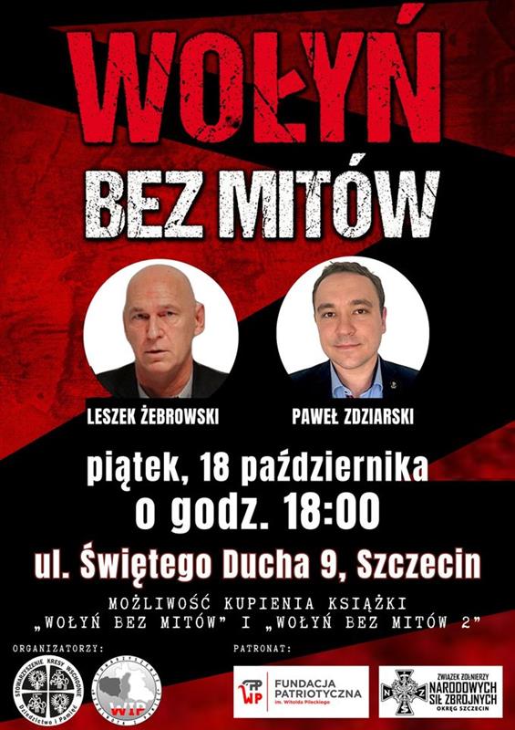 W piątek o g. 18 przy ul. Świętego Ducha 9 w Szczecinie rozpocznie się spotkanie "Wołyń bez mitów". O ukraińskim ludobójstwie rozmawiać będą historyk, felietonista i publicysta Leszek Żebrowski oraz Paweł Zdziarski, prezes stowarzyszenia "Wspólnota i...