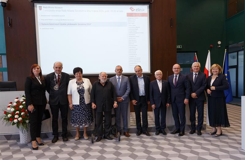 Neurochirurg Marek Lickendorf oraz fotografik Andrzej Łazowski podczas piątkowej uroczystej sesji Rady Miasta Szczecina zostali laureatami honorowego tytułu "Ambasadora Szczecina". Wręczono też Medale za Zasługi dla Miasta: Stefanii Biernat, dr. Bazylemu...