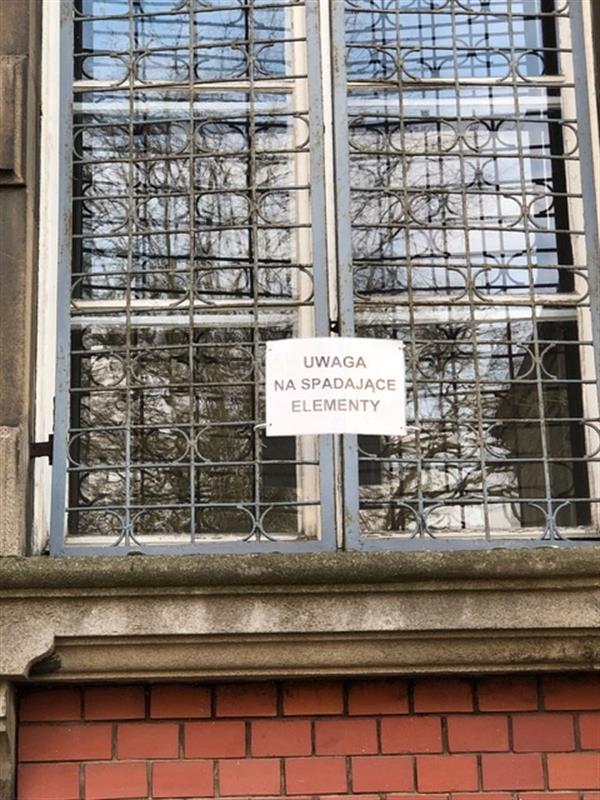 Nasz Czytelnik, spacerując ulicami Unisławy i Niedziałkowskiego w Szczecinie, zauważył na budynku Zespołu Szkół Budowlanych ogłoszenie informujące o zagrożeniu spadającymi elementami. Według niego informacja została umieszczona w taki sposób, że w zasadzie...