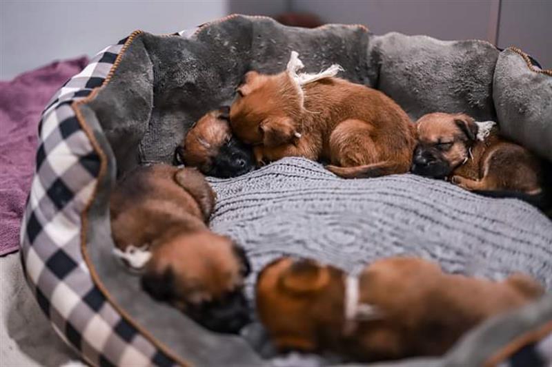 Są radosne, pocieszne i rozczulająco się rozłażą po kolanach wolontariuszy oraz pracowników schroniska. Jak to szczenięta. Tyle że akurat ta piątka maluchów jest szczególna: zbyt szybko oderwana od matki, niechciana. Na razie najwięcej śpią: jedno przy...